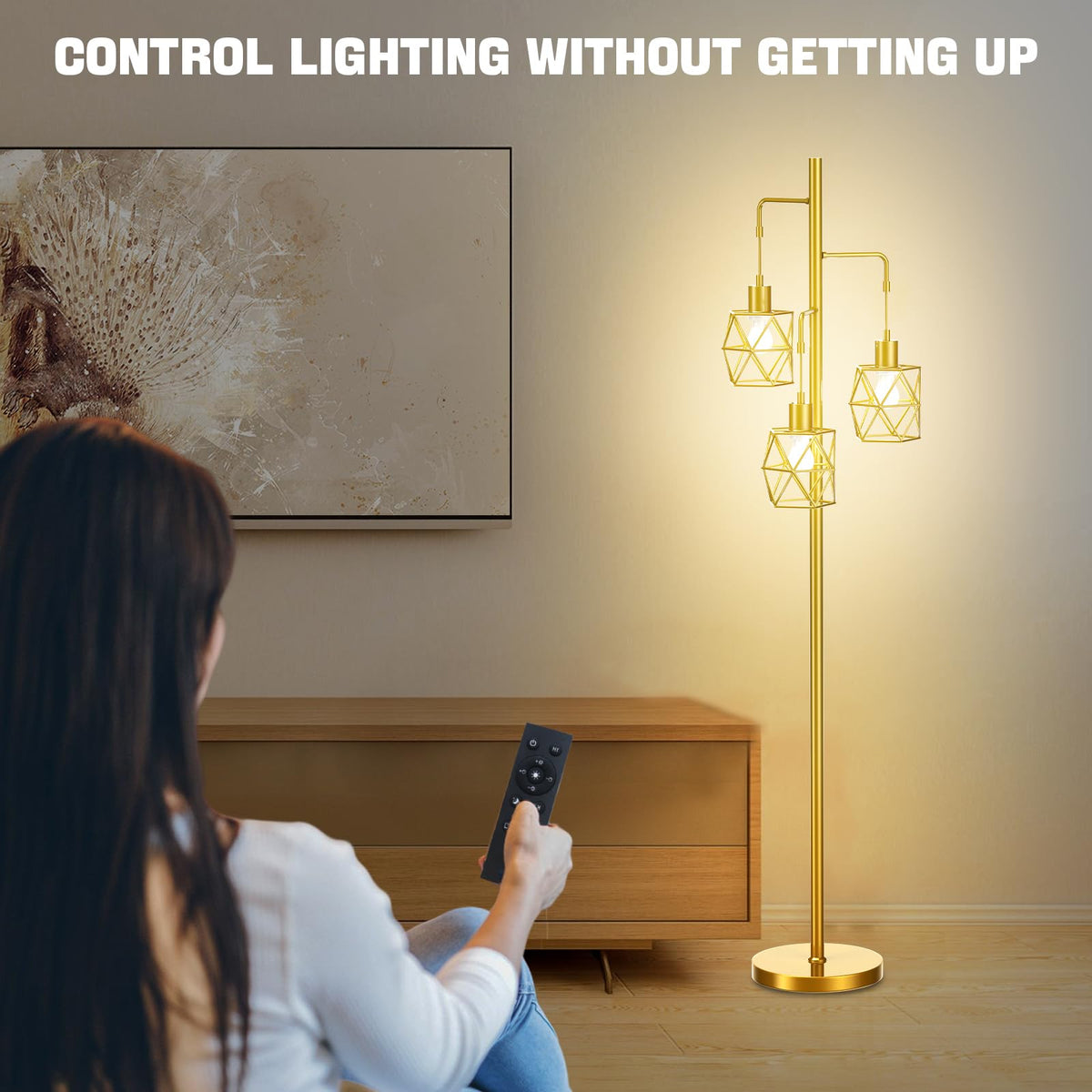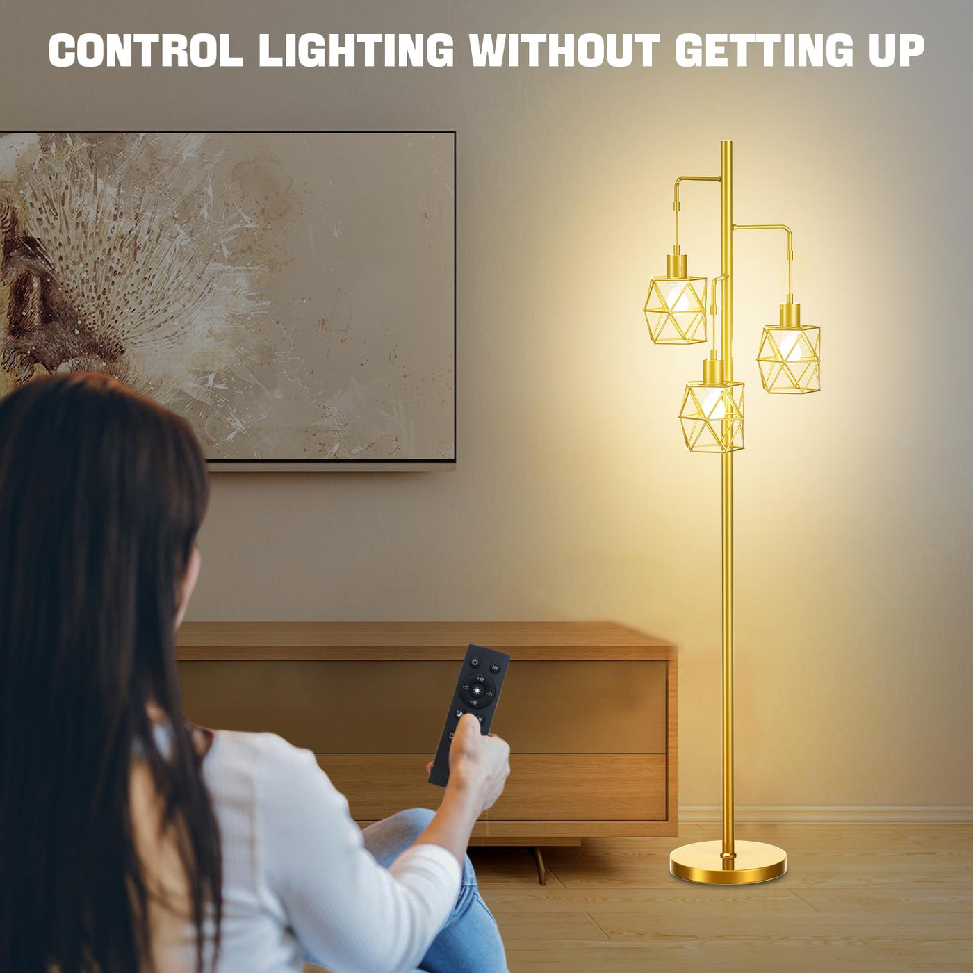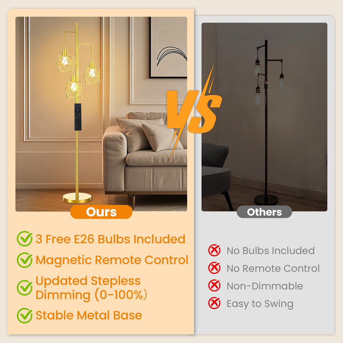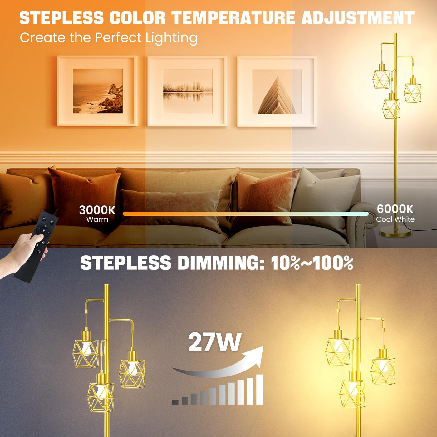Dimmable Industrial Floor Lamp - 3 9W/800Lm Bulbs Included And 4 Working Modes Led Gold Floor Lamp, Bright Tree Floor Lamps Tal