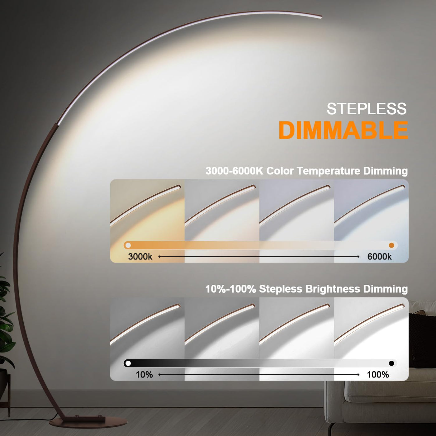 Dimmable Led Floor Lamp With 3 Color Temperatures, Ultra Bright 2000Lm Brown Arc Floor Lamps For Living Room, Modern Standing Ta