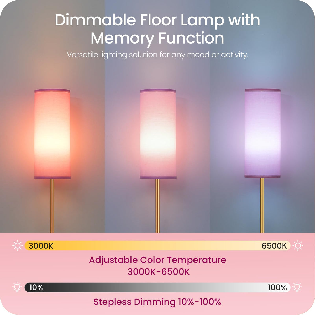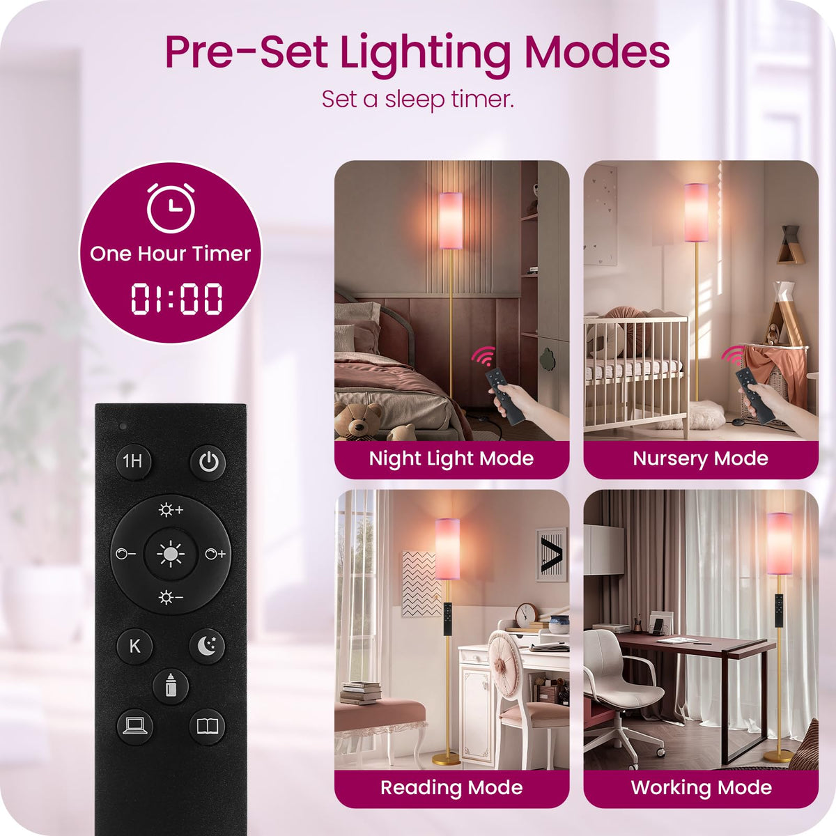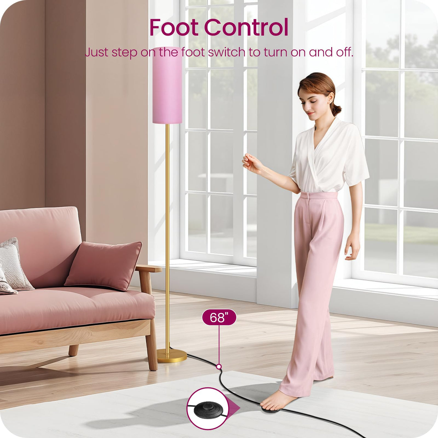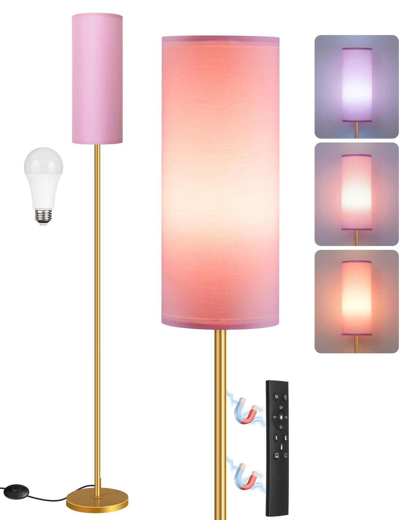 Dimmable Pink Floor Lamp For Living Room With Remote And Foot Switch, Corner Floor Lamp, 66'' Standing Tall Lamp, 10W 900Lm Bulb