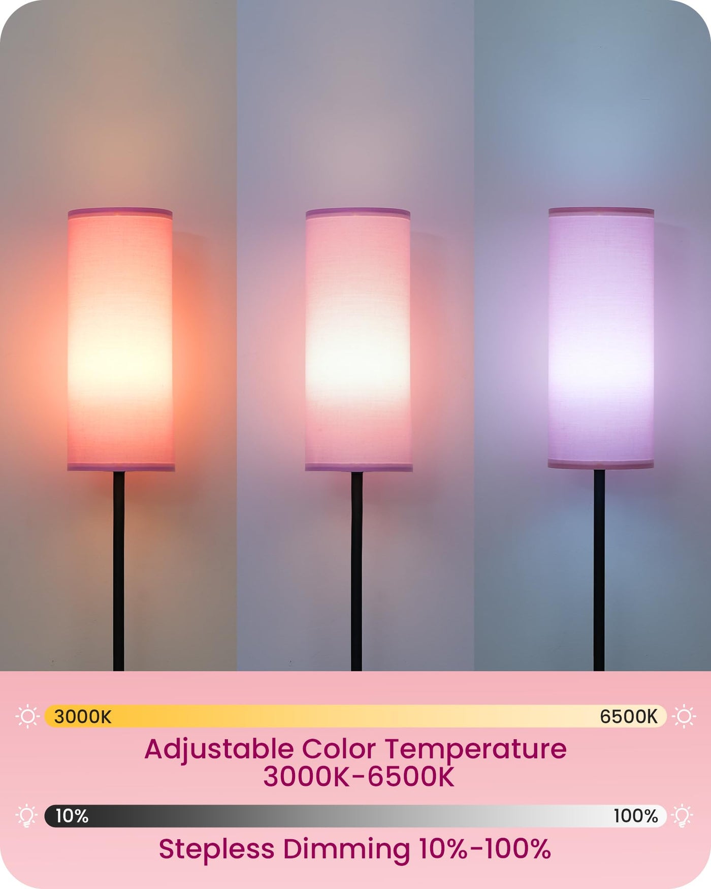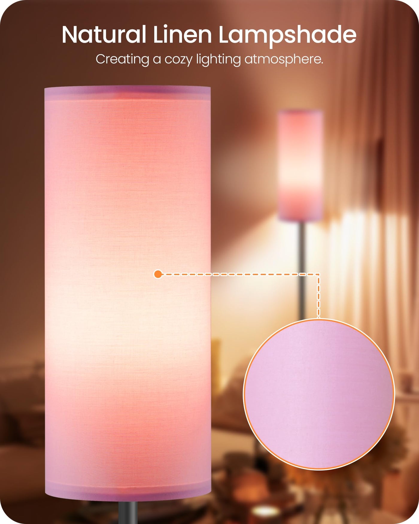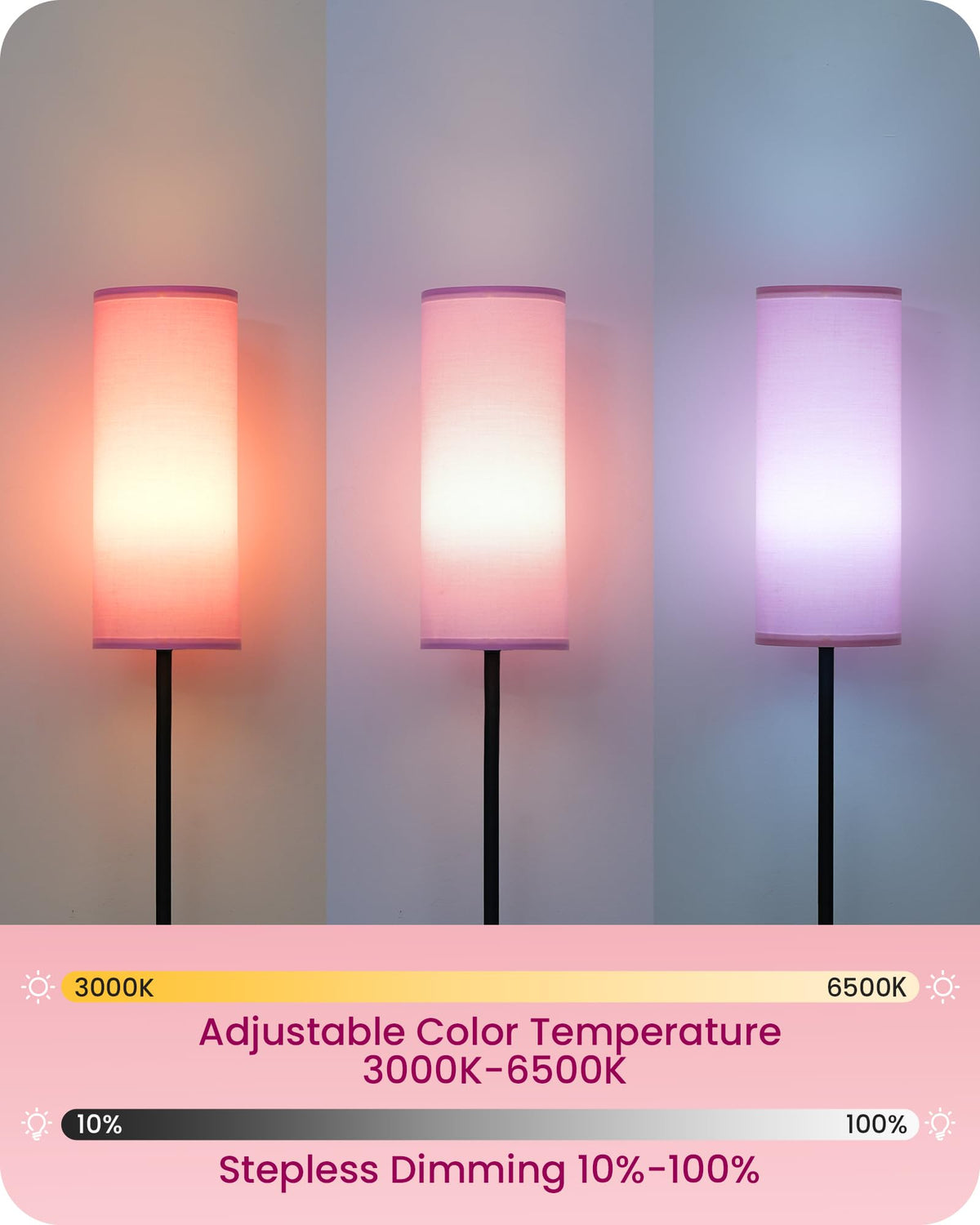 Q: Is the pink floor lamp suitable for different room styles?A: Yes, the pink floor lamp has a modern and minimalist design that fits well in various room styles, including living rooms, bedrooms, and offices. Its sleek black pole and soft linen shade add a cozy ambiance to any space.