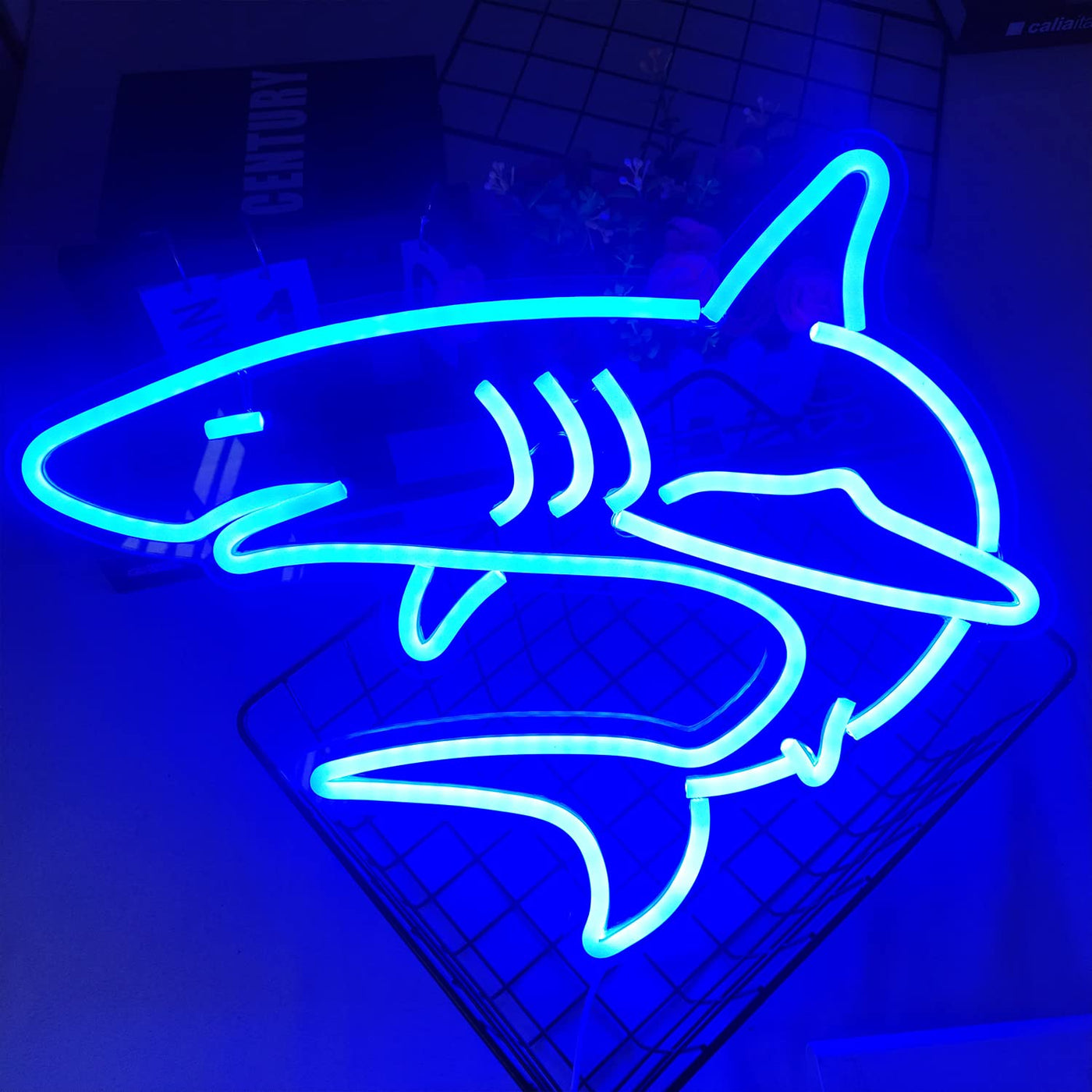 Dimmable Shark Neon Signs for Wall Decor,Large Reusable Shark Neon Light Sign for Boys Gifts Living Game Room Shop Hotel Bar Birthday Party Decor Lifelike Shark Night Light 16.5X13.5 Blue