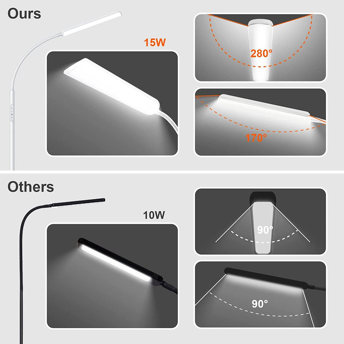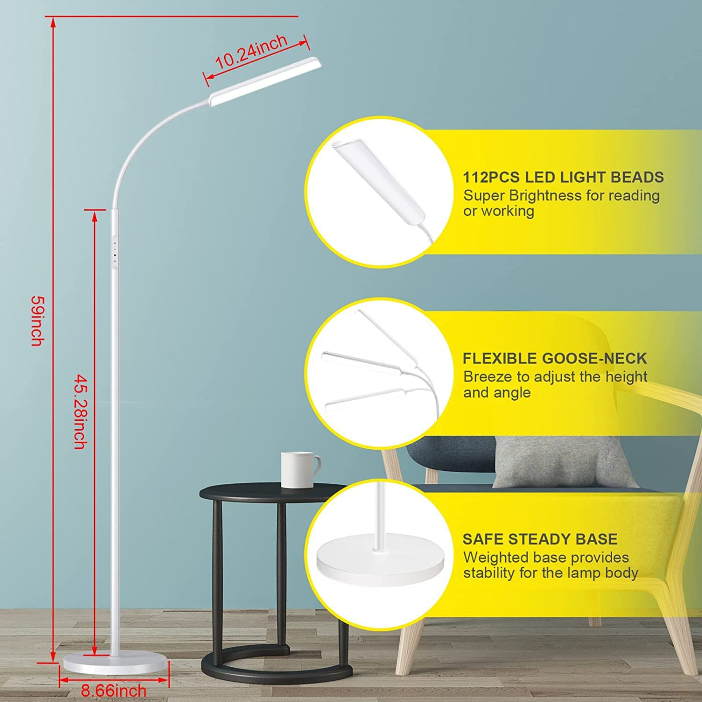 Dimunt LED Floor Lamp, Bright 15W Floor Lamps for Living Room with 1H Timer (White)