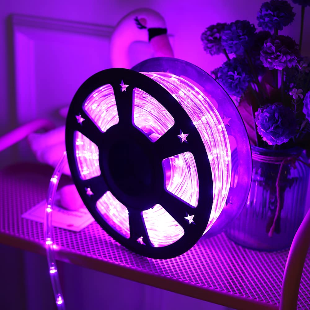 DINGFU 50ft Purple LED Waterproof Rope Lights - Connectable Indoor Outdoor Decor for Deck, Patio, Pool, Camping & Bedroom Lighting