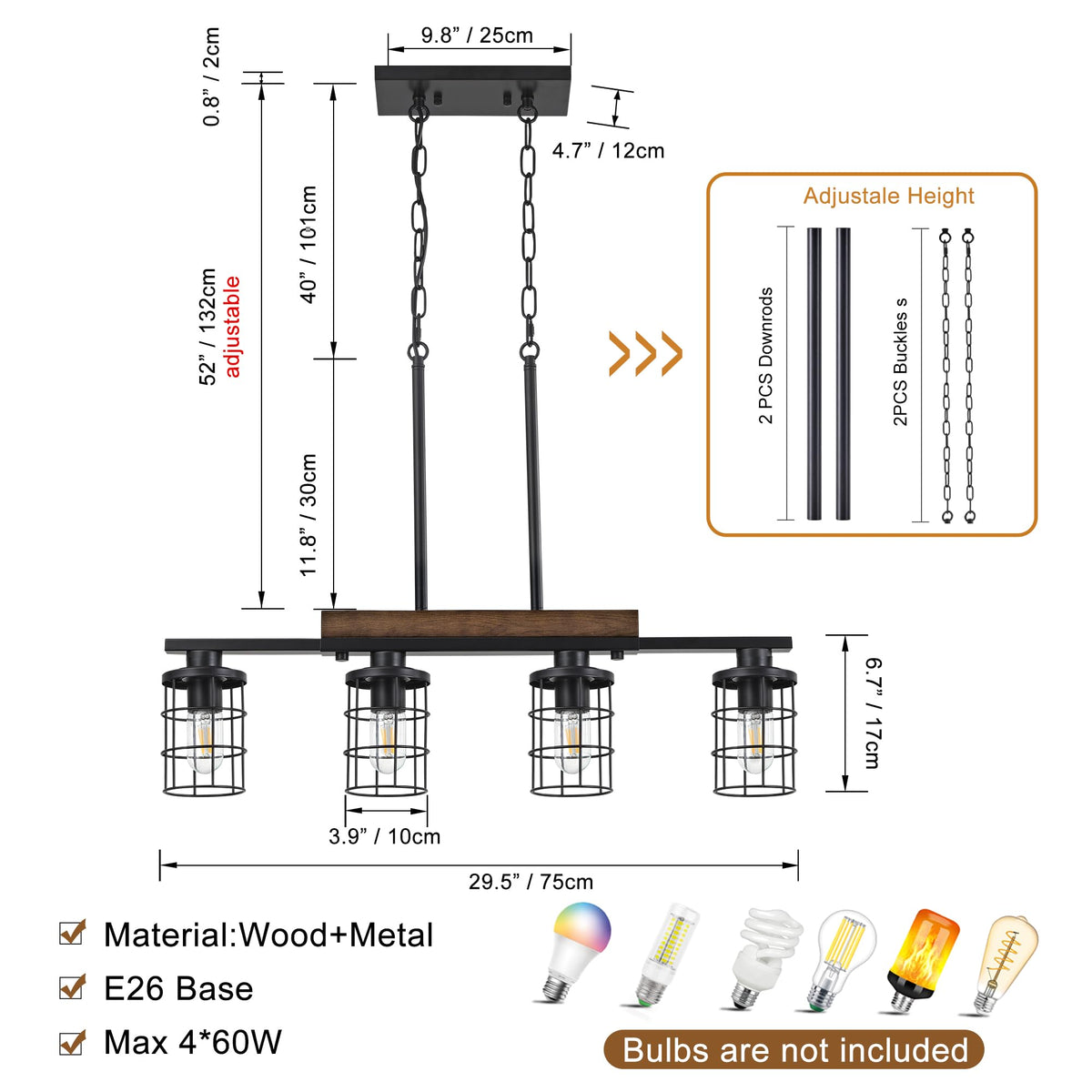 Dining Room Light Fixture/Chandelier Over Table, 29.6-Inch Hanging For Farmhouse Linear Chandeliers,4-Light Kitchen Island Light