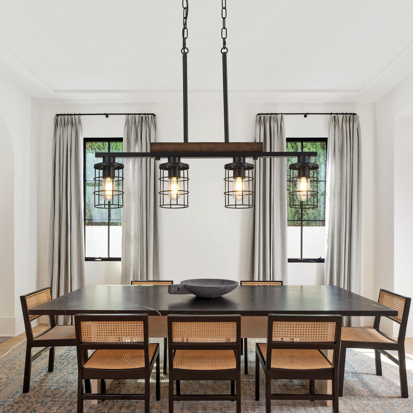 Q: What style does this light fixture complement?A: This chandelier features a modern farmhouse style that pairs wood with black metal, making it suitable for a variety of interior styles, including modern and industrial aesthetics. It enhances the ambiance of dining rooms, kitchens, and living spaces.