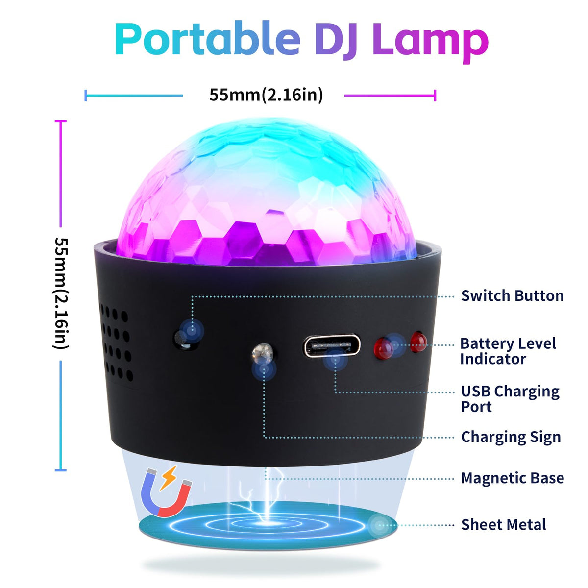 Portable Disco Lights Wonderful for Car Decoration Party Light Christmas Lights Birthday Present Holiday Gift Musical Induction Rhythm Dancing Light Ball Features: 1. Light weight, small size, perfect for room party 2. Best lighting area is 15-30 suqare meter 3. Low power consumption, high brightness, stable performance, long life
