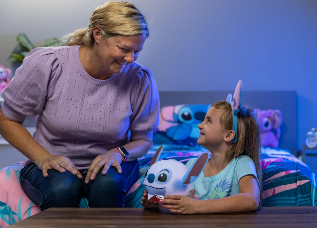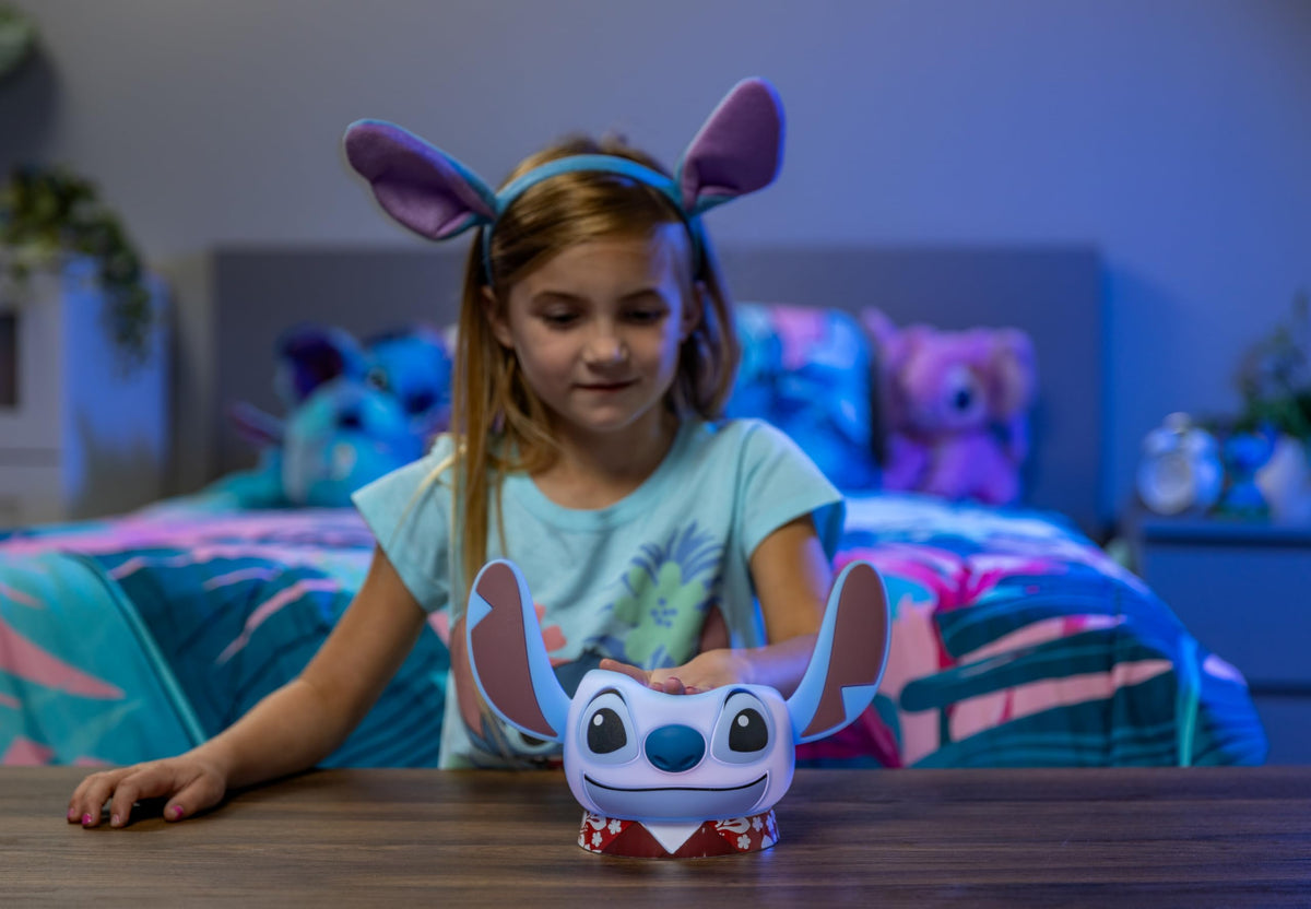 Enjoy an alien aloha with the Stitch Squish?ms Light! Featuring the lovable design of Stitch himself, this soft, squeezable light is perfect for any fan of the Lilo and Stitch movie or the magic of Disney. Great as a night light in bedrooms, a fun accent light, a desk light or tabletop lamp, fill any space with fun illumination. Simply press the ON/OFF button to turn the light on, then gently tap the underside of the base to switch between three levels of white light. Press and hold the ON/OFF button to turn the light off. There are two ways to power the squishy light - the included USB-C cable or three AAA batteries (not included). Using the USB-C cable (5V, 1A USB-A adapter required) provides a streamlined, energy-efficient way to keep your space lit. Using batteries lets you take Stitch with you on the go! Created to last, cool to the touch and certified for safety, this light is designed for your peace of mind. Light your space with the goofy extra-terrestrial charm of Disney? Stitch Squish?ms Light.