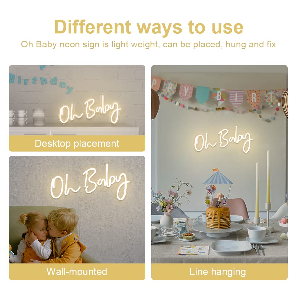 DIVATLA Oh Baby Neon Sign for Baby Shower Decorations, Gender Reveal, Led Sign for Backdrop & Wall Decor, Photo Prop, Gift for N