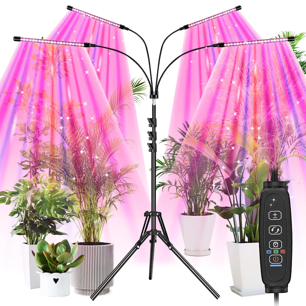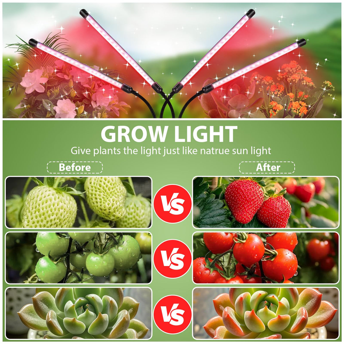 DKSPCM Grow Lights for Indoor Plants,4 Heads 6000K Red Blue Plant Light with 3/9/12H, Indoor Grow Lamp with Auto On/Off Timer Fu