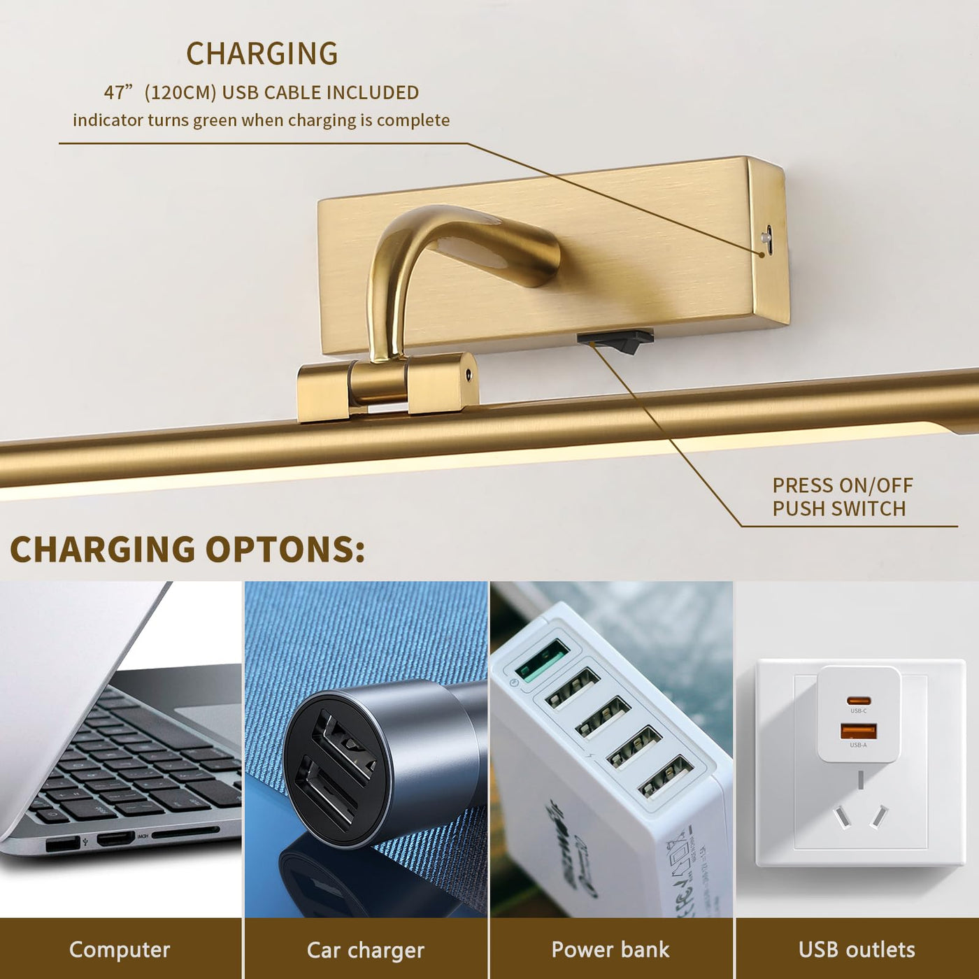 Battery Operated Picture Light With Remote And Timer, 15.94In Wireless Gallery Lights Brass 3Cct Rechargeable Art Lights For Paintings, Dimmable Wall Lights For Picture Display