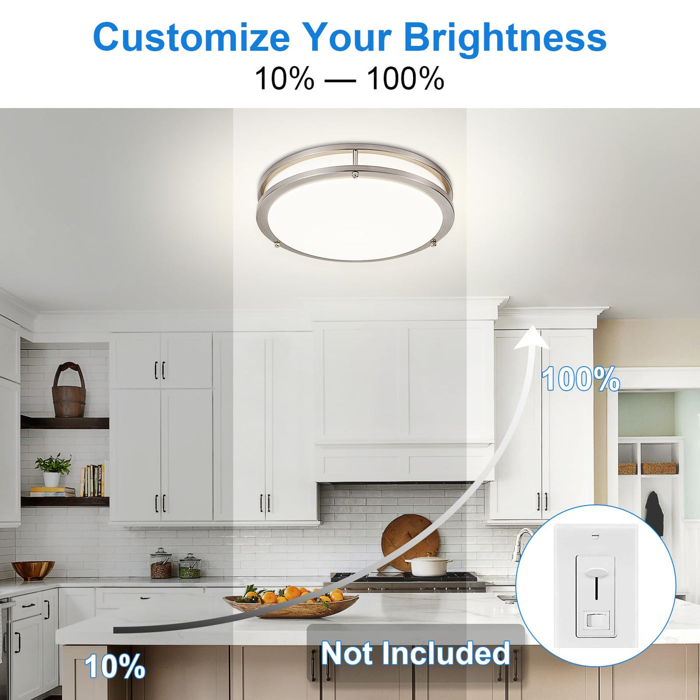 Dllt 2Pack Flush Mount Led Ceiling Light: 13 Inch 5Cct (3000K-6000K) & Dimmable Ceiling Light Fixtures For Bedroom Hallway - 24W Modern Brushed Nickel Super Bright Kitchen Lighting Fixtures Ceiling