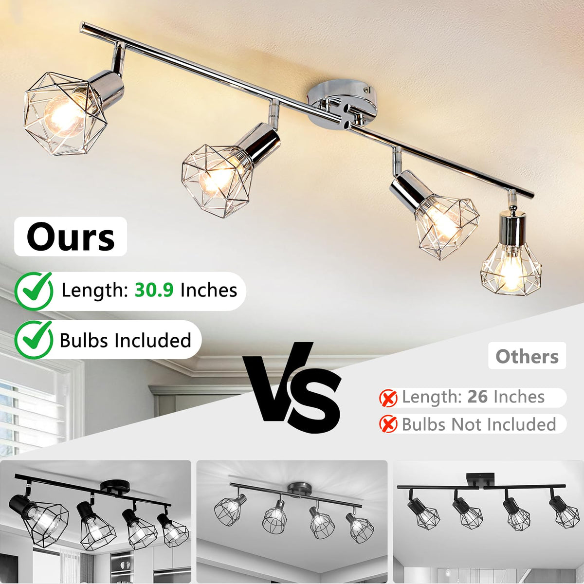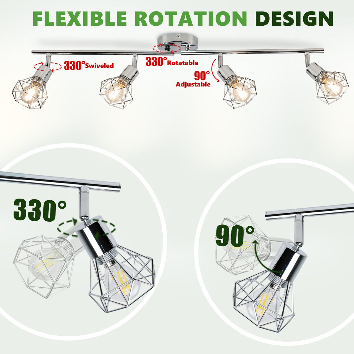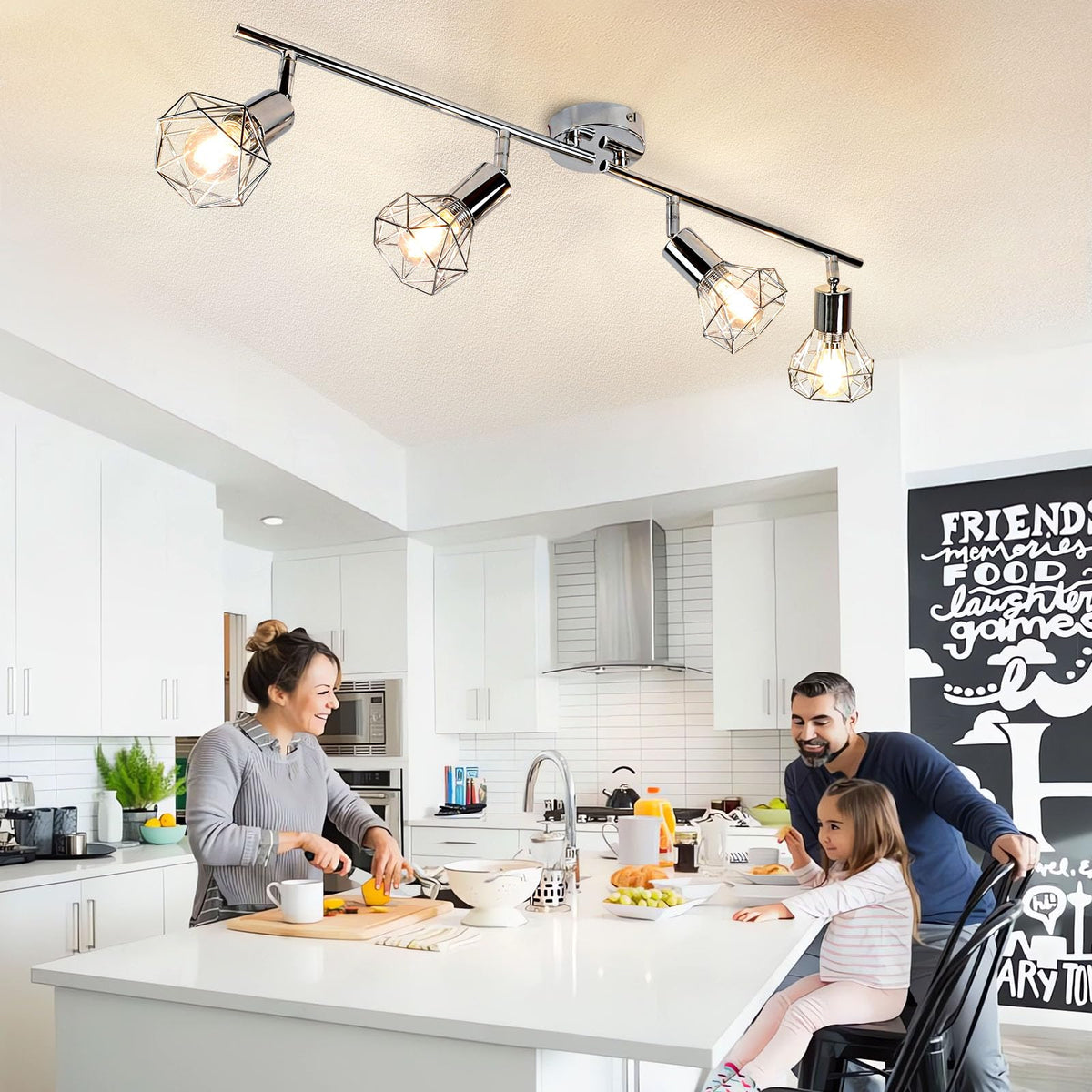 Modern LED Track Lighting Kit - 4 Lights Adjustable Decorative Track Light Fixture, 4 Way Flush Mount Ceiling or Wall Spotlight for Kitchen, Dining Room, Hallway, Bedroom, Warm Light, Silver. This lighting kit stands out for its modern design and practicality, with 6 adjustable spotlight heads that can be directed as needed to ensure every corner is well-lit. Whether youre preparing a meal in the kitchen, enjoying dinner in the dining room, or relaxing in the bedroom, this lighting kit provides the ideal lighting. The silver exterior design allows it to blend effortlessly into various decorative styles, whether modern minimalist or traditional elegance, it pairs perfectly. With energy-saving LED technology and a long lifespan, it is the ideal choice for your home lighting.