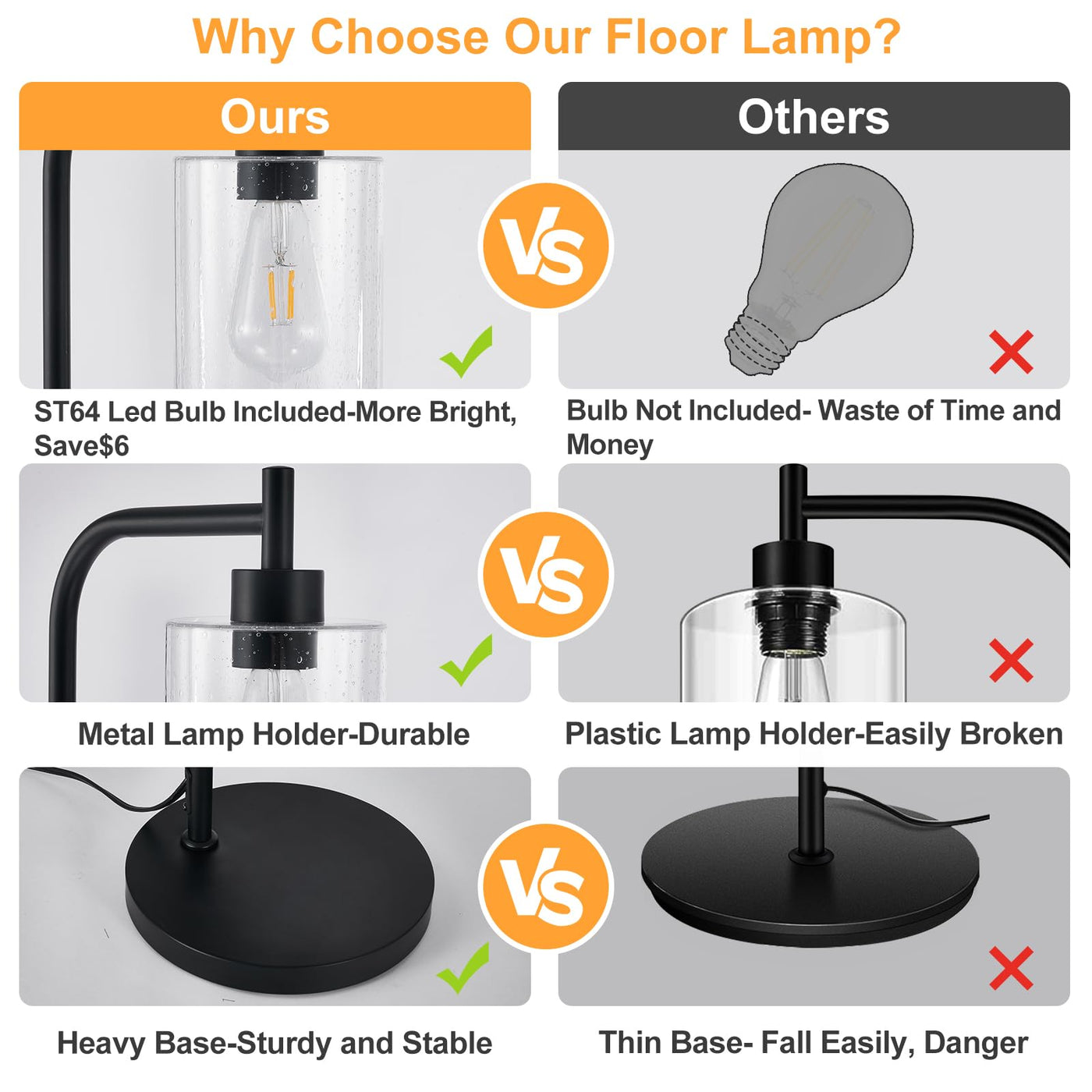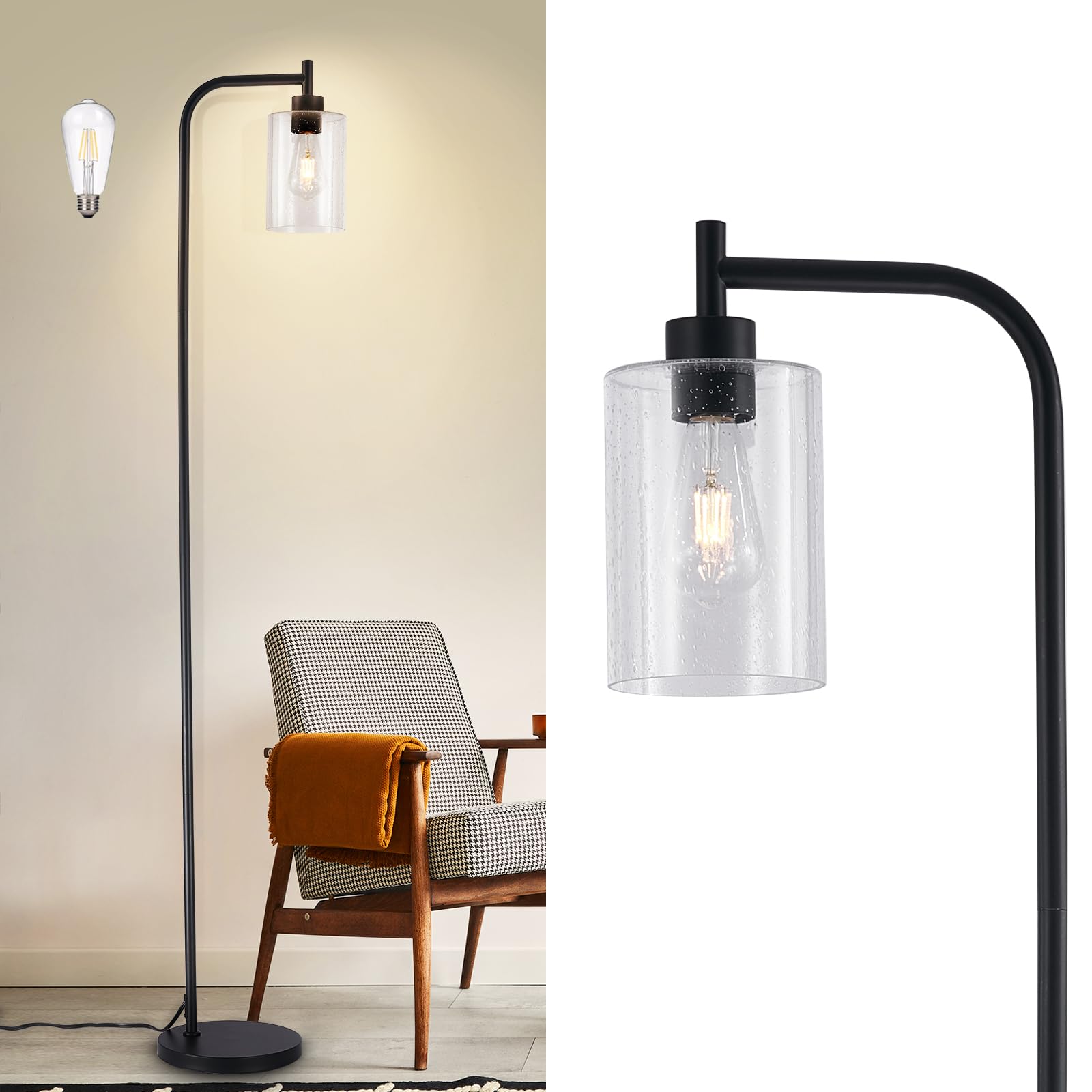 Dllt Floor Lamp Tall For Room: Black Standing Lamp With Seeded Glass Lampshade For Living Room - Modern Bright Lamp For Bedroom