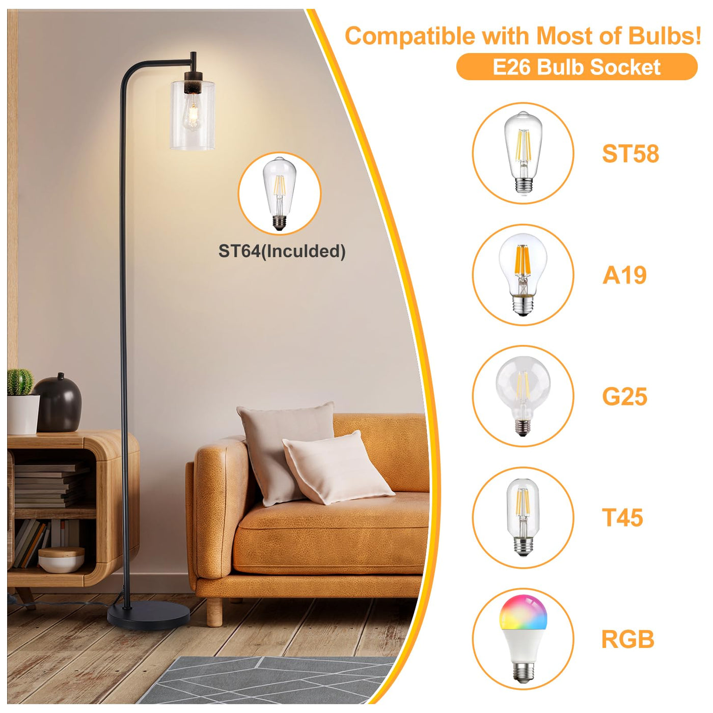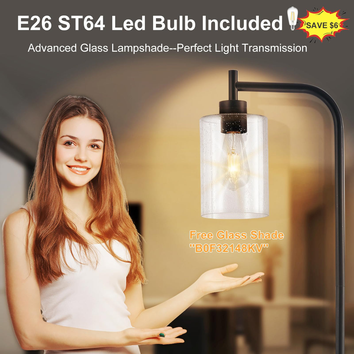 This Elegant Single-Head Floor Lamp Exudes A Timeless Charm, Blending Modern Aesthetics With Practical Functionality. At The Core Of Its Design Is A Sturdy Metal Base, Which Provides Stability And Supports The Entire Structure. The Base Is Crafted From High-Quality Metal, Finished In A Sleek And Durable Matte Or Polished Texture, Adding A Touch Of Sophistication To Any Room. Rising Gracefully From The Base, The Lamp Features A Sleek And Slender Metal Pole. This Pole Not Only Serves As The Structural Backbone But Also Adds An Element Of Visual Elegance. Its Smooth, Continuous Curve Leads Up To The Lamp'S Most Striking Feature: The Glass Shade. The Glass Shade Is A Masterpiece Of Craftsmanship, Designed To Distribute Light Evenly And Create A Warm, Inviting Ambiance. Crafted From Clear Or Stained Glass, The Shade Offers A Variety Of Patterns And Textures, Allowing Light To Filter Through In A Beautiful, Diffused Manner. Whether You Prefer A Simple, Clear Design Or One Adorned With Intricate Patterns, The Glass Shade Adds A Layer Of Artistic Appeal To The Lamp. At The Top Of The Pole, Nestled Within The Glass Shade, Sits An 8W E26 Bulb. This Energy-Efficient Bulb Provides Ample Lighting For Reading, Working, Or Simply Enjoying A Cozy Evening At Home. The E26 Standard Base Makes It Easy To Replace The Bulb When Needed, Ensuring That You Can Always Maintain The Perfect Lighting Level For Your Space. For Added Convenience, This Floor Lamp Is Equipped With A Foot Switch. Located Near The Base, The Foot Switch Allows You To Easily Turn The Lamp On And Off Without Having To Reach For A Wall Switch Or Cord. This Feature Adds A Touch Of Luxury And Practicality, Making It Perfect For Use In Living Rooms, Bedrooms, Or Home Offices. Overall, This Single-Head Floor Lamp With Its Glass Shade, Metal Lamp Holder, 8W E26 Bulb, And Foot Switch Offers A Perfect Blend Of Style, Functionality, And Convenience. It Is Not Just A Lighting Solution But A Beautiful Addition To Your Home Decor, Enhancing The Ambiance And Creating A Welcoming Space For You And Your Guests. Dinglilighting Modern Farmhouse Floor Lamp ? User-Friendly 1. The Wires Are Hidden Inside The Metal Pole Then Will Not Affect The Appearance. 2. Foot Switch Feature Of Tall Floor Lamp Is More Convenient To Switch The Light On/Off. ? Optimal Efficiency Compatible With Various Bulbs: E26 Base Socket Is Compatible With Various Bulbs, Such As Led, Incandescent, Cfl, Rgb. (60W Max) ? Included 8W St64 Style Light Bulb ?3000K Soft Light & Eye-Care High Light Transmittance Glass Lampshade, The Glass Floor Lamp Can Emit Soft Light, Anti Glare And Flicker Free, Which Protect Your Eyes And Less Eye Fatigue After Working Or Studying. ? Suitable For Small Corners Whether You Read Books In A Recliner, Or Work At A Desk, The Lamp Fits Easily Beside Your Furniture. Its Slender Design Allows It To Position Well Near The Seats, Sofas, Armchairs, Side Tables Etc. ? Wide Application The Classic Standing Reading Lamp Especially For Bedroom, Living Room, Lounge, Study Room, Office, Hotel Suite, Dinning Room. Specifications -Voltage: 120V Ac -Power Max.:60W -Bulb Socket: E26 -Material:Metal+Glass -Power Source: Corded-Electric Package Contents 1*Floor Lamp1*8W Warm White Bulb 1*User Manual Tips 1.This Standing Tall Down Light Is Not A Toy And Don'T Let Children Play With The Floor Lamp. 3.Need To Install By Yourself, It Is Recommended To Assemble The Lamp Shade First, Then Assemble The Lamp Pole From Top To Bottom, And Finally Install The Lamp Base.