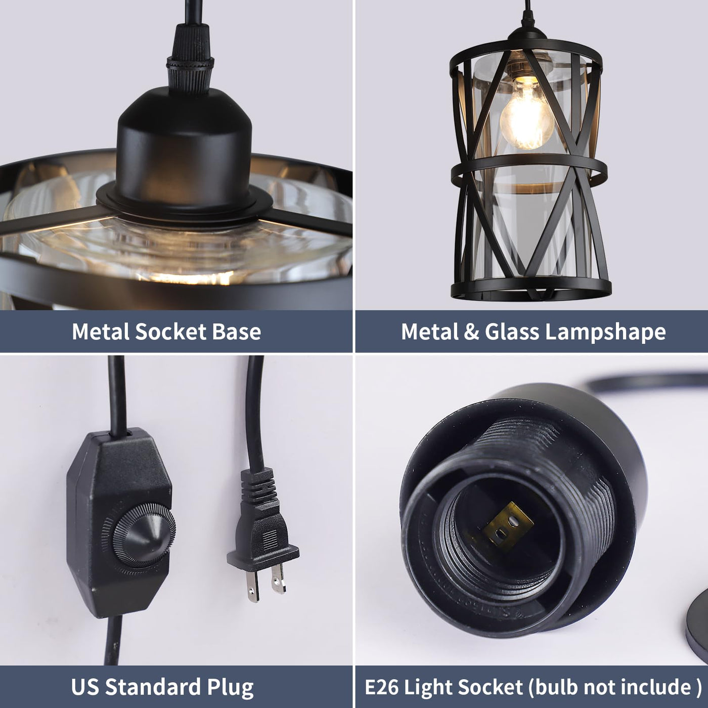 Q: What type of bulb is compatible with the DLLT Industrial Plug in Pendant Light?A: The DLLT Industrial Plug in Pendant Light is designed to work with E26 base bulbs. Please note that the bulb is not included with the purchase, so you can choose a compatible bulb that suits your brightness and aesthetic preferences.