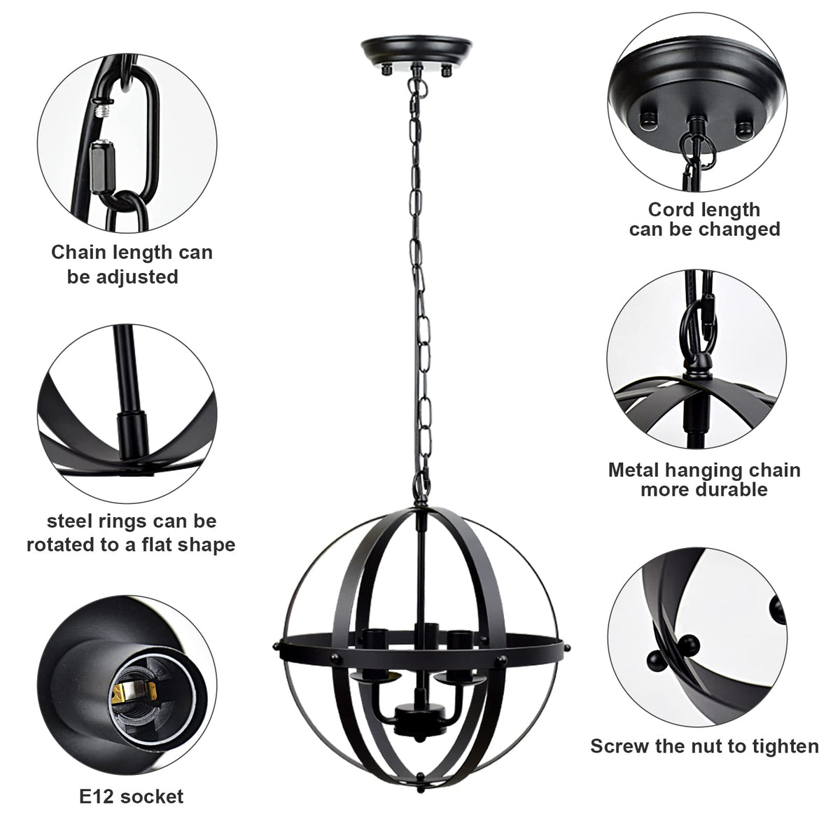 Specification: Brand:DINgLILIgHTINg Material:Metal Power Max:3*40W Lamp Holder:E12 Voltage:86-265V50hz color:Blackgold Why choose our spherical pendant light 1It is heavy duty and made of quality materials, gives you thorough quality and safety assurance at home, business or other use 2The adjustable chain & cord height can be changed 3ItAcanAbeAaAperfectAdecorationAatAyourAhomeAandAmoreAotherAplaces 4Elegantly match over your stairs, kitchen island, foyer, hallway, bedroom, living room and more 5Perfect for modern farmhouse, rustic, industrial style decor Adapted to various ceilings The fixture not only could be fixed on flat, sloped, slanted or vaulted ceilings, but low, mid-height or high ceilingsSo you will never worry about these problems any more outer diameter of ball 1259, diameter of sucker 511