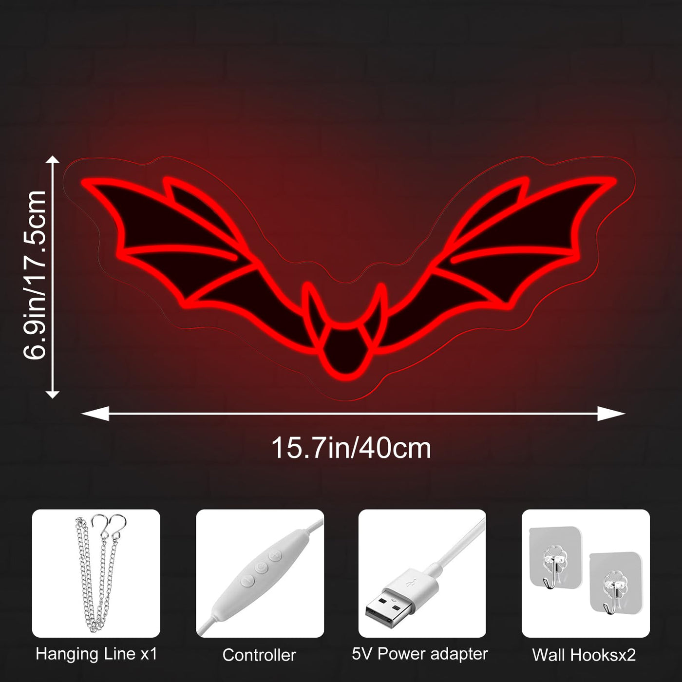 Complete Package: Includes bat neon sign, hanging chain, and wall hooks for easy installation.