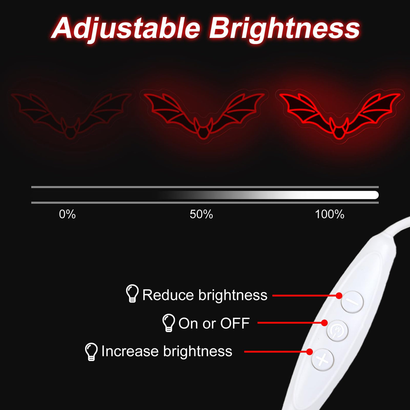 Q: Is the brightness of the Bat Neon Sign adjustable?A: Yes, the Bat Neon Sign includes dimmable settings that allow you to adjust the brightness according to your desired atmosphere.