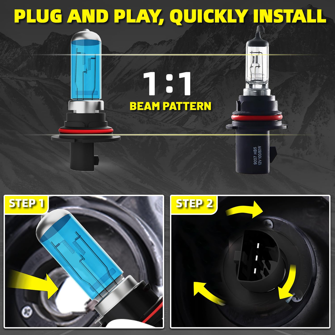 Descriptions: The headlight bulbs combo are fully fit for Dodge Ram 2002 2003 2004 2005 2006 2007. Halogen lights to mini Wireless design.It can be directly connected to the socket without external drivers and external wires. Direct replacement for your vehicles factory bulbs, requiring no modifications or special tools. Compared to stock halogen bulbs, high brightness and longer irradiation distance Can perform well in low visibility conditions in harsh weather conditions like fog, rain, snow, dust, etc. Specifications: Model: 9007 9006 Working Voltage: DC 12-24V Material: Aluminum and Quartz Glass Color Temperature: 5500K White Light Waterproof: IP68 Rate Lifespan: 30000 Hours Use for: High beam,low beam and fog light. Package Include: 2PCS 9007/HB5 high low beams 2PCS 9006/HB4 fog lights Kindly Reminder:If one bulb burns out, the other isnt far behind. Its highly recommended to replace the headlight bulbs at the same time.