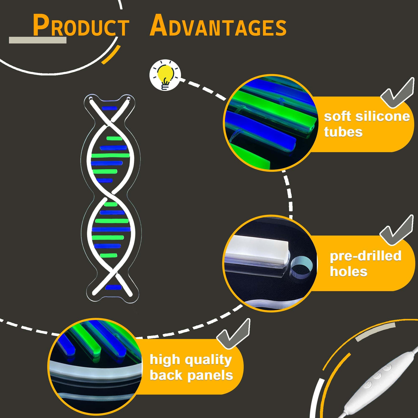 Dna Double Helix Neon Signs For Wall Decor Dimmable Led Dna Neon Light Art Wall Sign Usb Powered For Man Cave Gaming Room Bedroom Biology Science Gift Decor For Nurse Doctor Physician(4.7 * 16.1In)