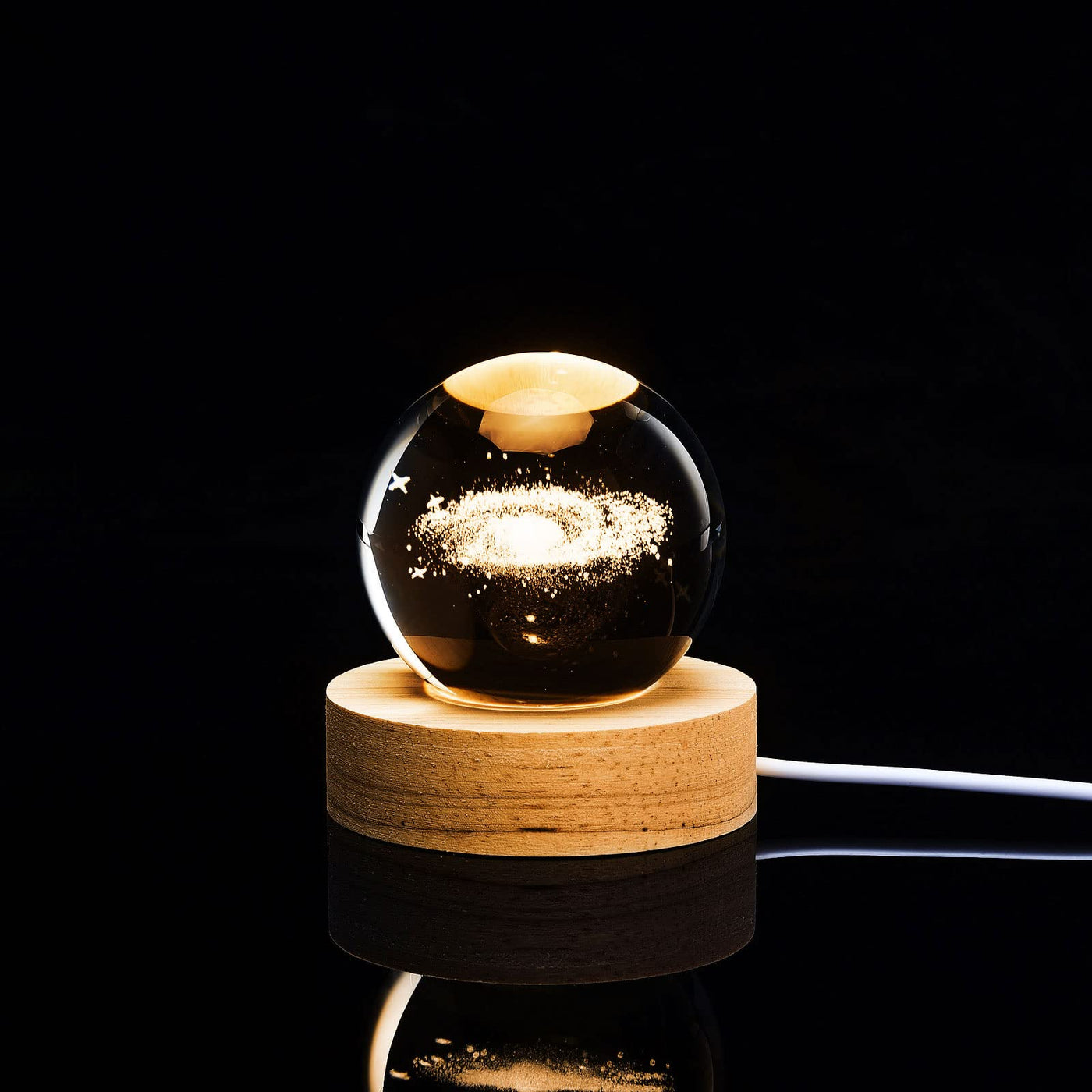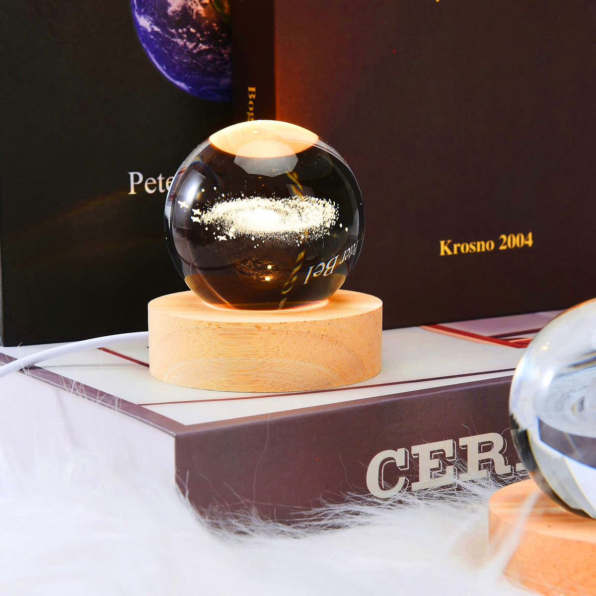 Features 1. This luminous crystal ball night light is romantic for both children and adults. There are LED lights on the wooden base, which are very bright. This product can be charged via USB and can be used as a bedside lamp or flashlight. 2. Exquisite patterns: Designed using 3D carving technology, the moon, Milky Way, and elk have very similar patterns, which can be used as indoor decorative lights and the atmosphere of houses. 3. Environmental protection and safety: The children's moon and star lights are made of high-quality crystals, which are safe and harmless to the human body. The night light is soft, uniform, and non flickering. This is a practical children's bedroom night light. 4. Perfect Gift: The base is made of solid wood, with a warm color, no paint, natural health, and long lifespan. The dreamy crystal ball and pure wood base are a perfect combination. Recommended as a gift for women. 5. Applicable scenario: It can be used as a decorative light or night light in living rooms, bedrooms, bathrooms, offices, etc. Its volume is small enough to not occupy too much desktop space. specifications Material: Crystal, wood Style: Warm solar system lights Ball diameter: 8 centimeters Size: 13 x 13 x 12 cm Weight: 800 grams The package includes: 1 x Crystal Ball Night Light 1 x Wooden Base Package Including The package includes: 1 x Crystal Ball Night Light 1 x Wooden Base