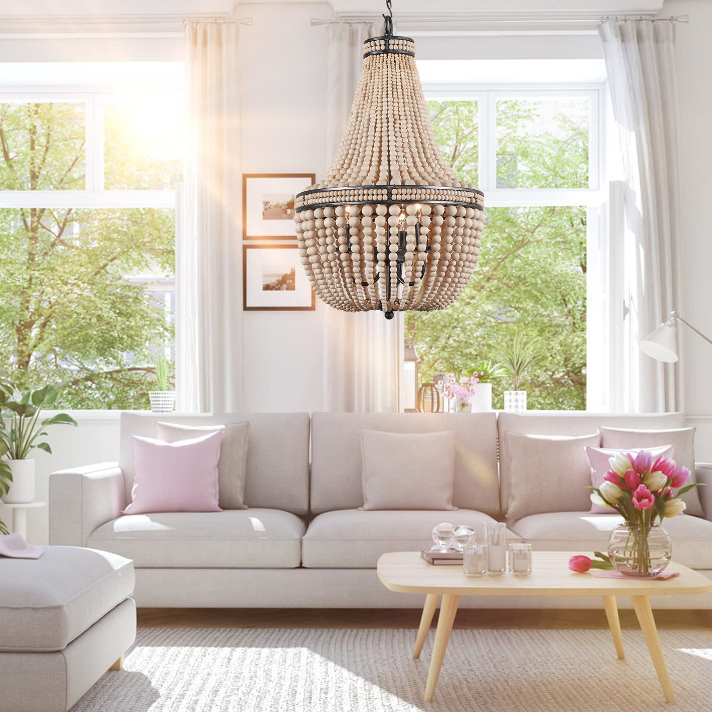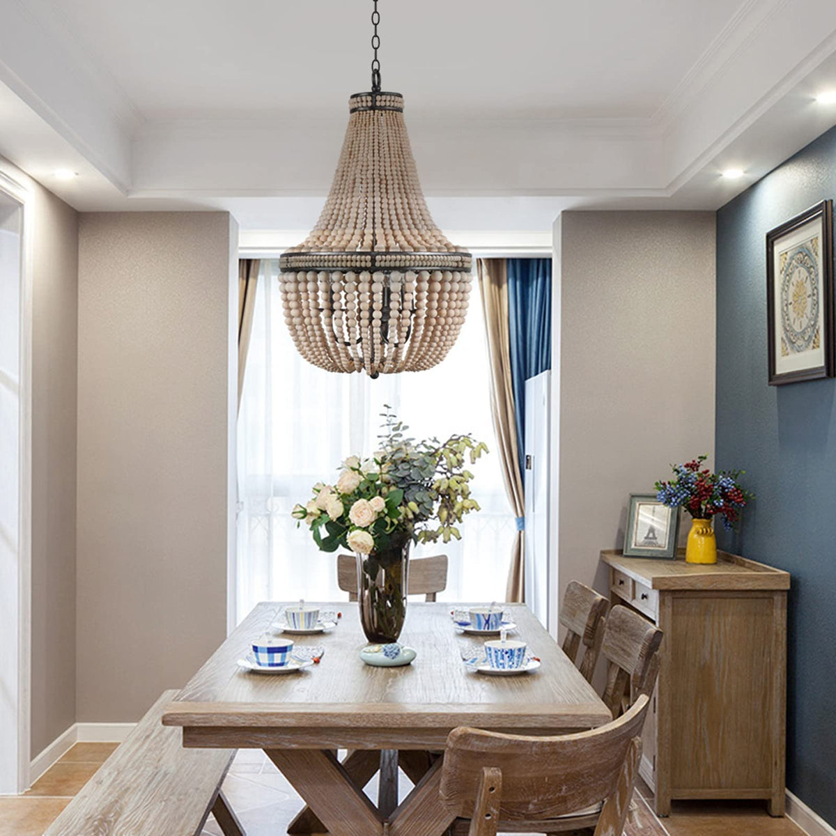 - **Handmade Boho Style**: Each chandelier is meticulously handcrafted with natural wood beads, creating a distinct vintage look that complements farmhouse and modern aesthetics alike.