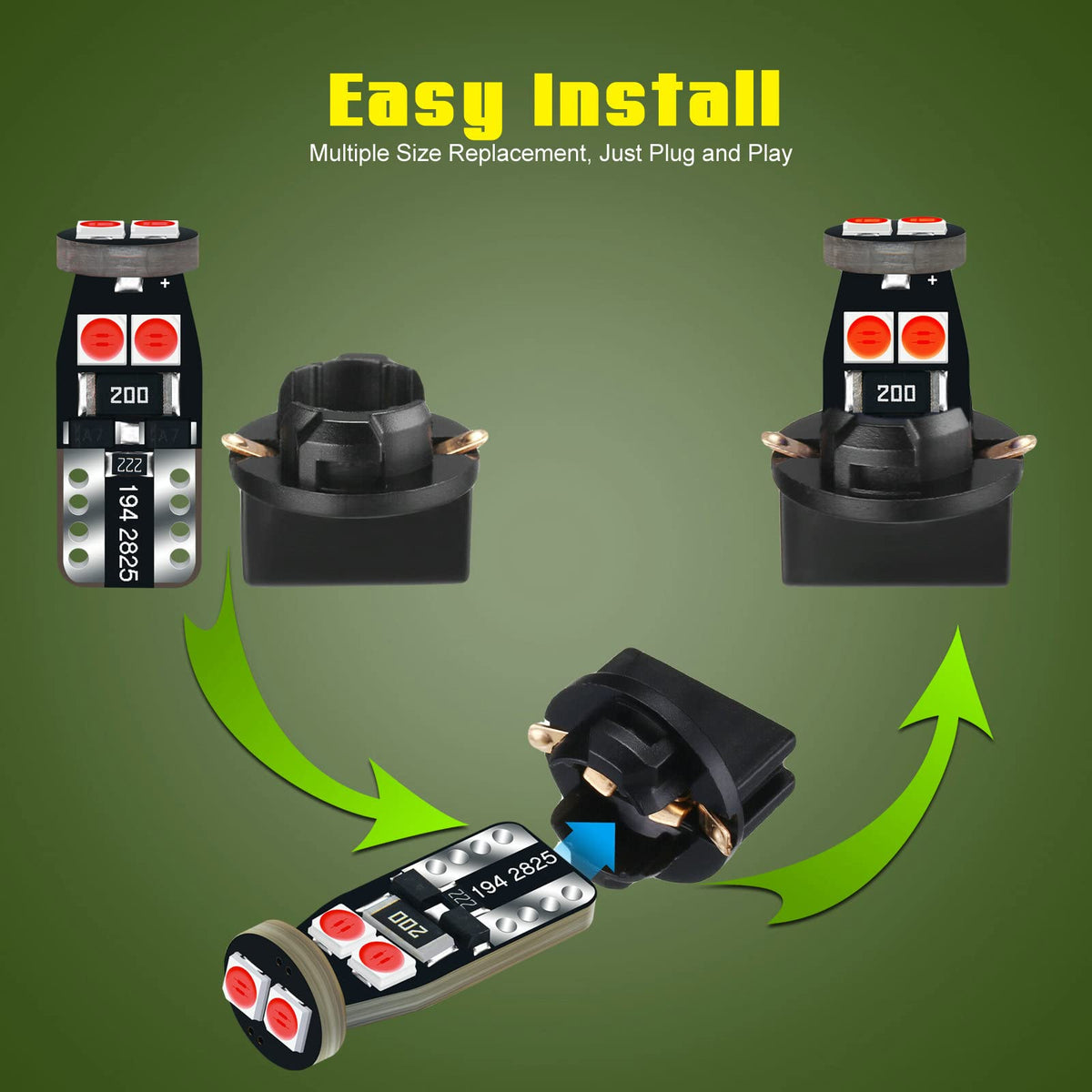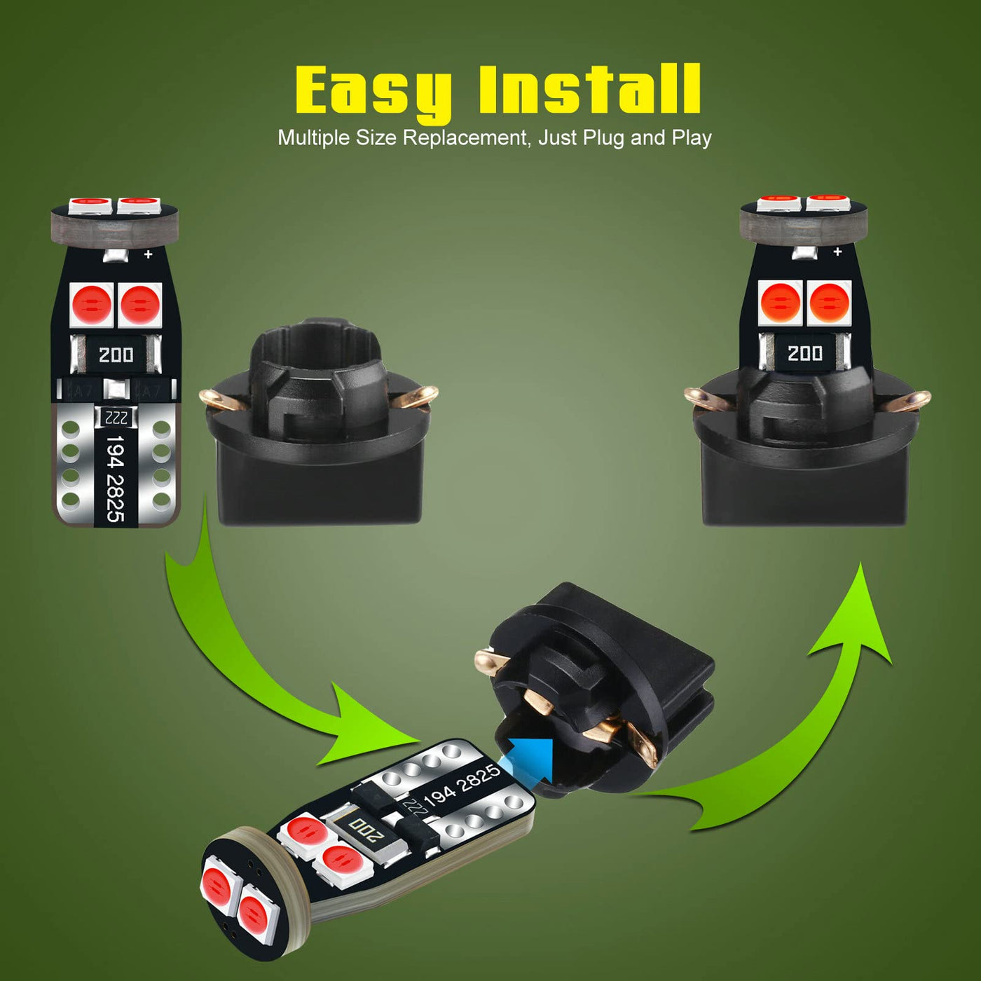 Q: Can these bulbs be used in any lighting application in my vehicle?A: Yes, the DODOFUN LED bulbs are versatile and can be used in various applications such as instrument cluster lights, clock lights, ash tray lights, and more. As long as your original bulb size matches the specifications, these bulbs will work effectively.