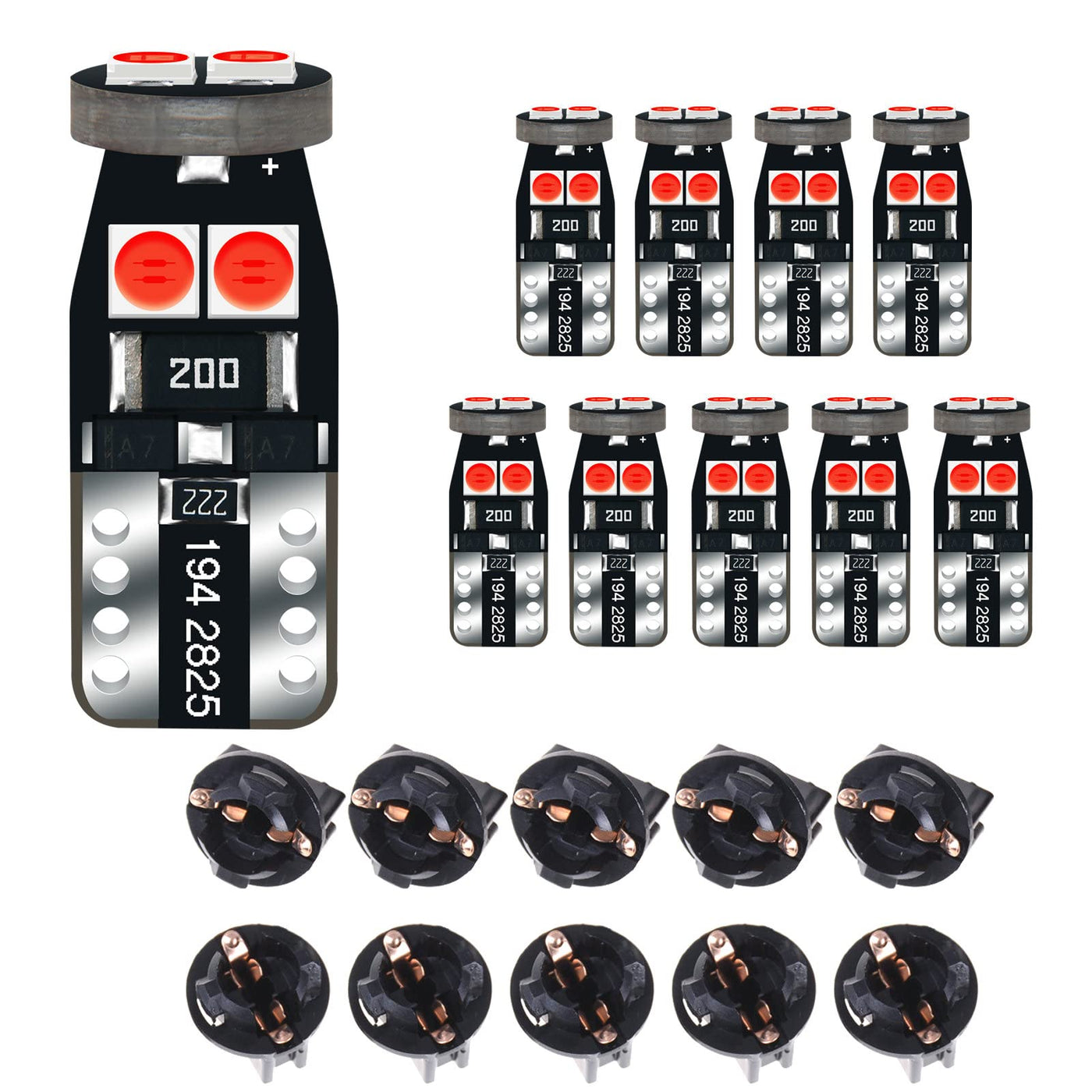 Dodofun 12V Red T10 Pc168 Pc175 Pc194 Pc194R Pc195 Pc160 Pc161 Pc195Na Instrument Cluster Light Led Bulb Replacement For Dashboard Dash Panel Gauge Indicator Lamp W5W 158 168 194 2825 With Socket