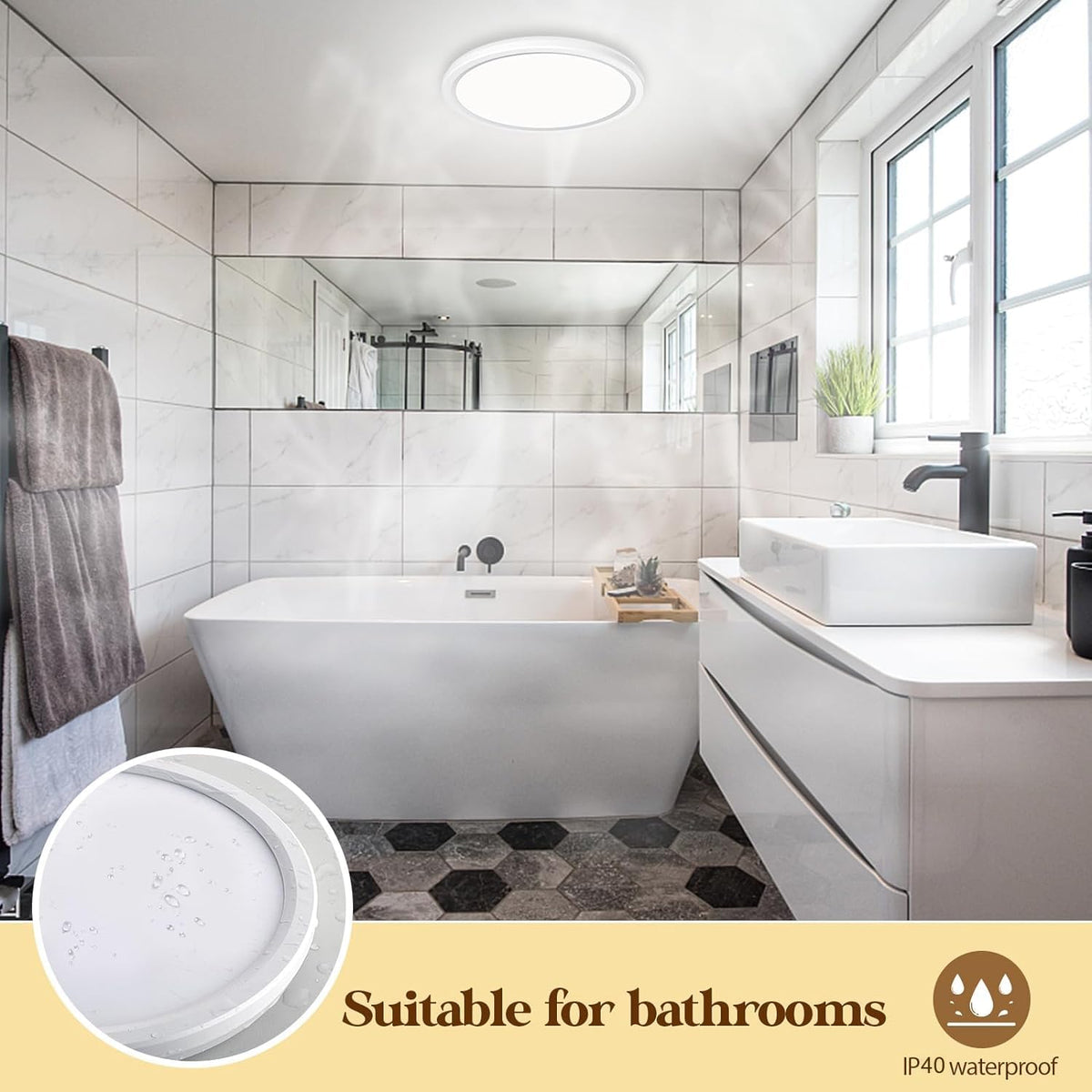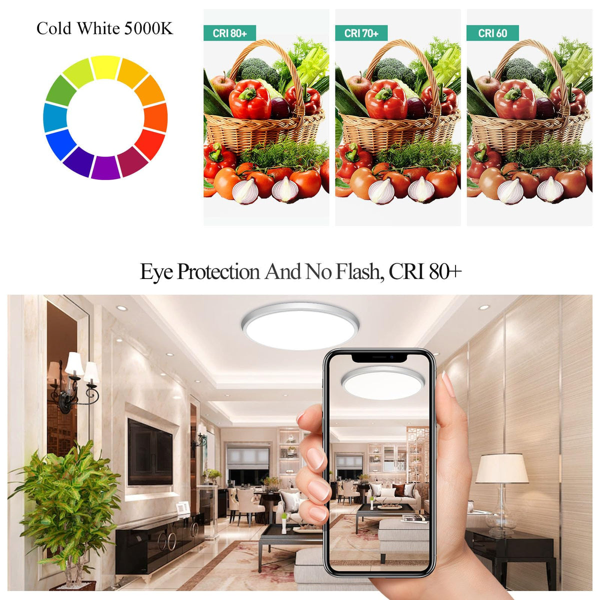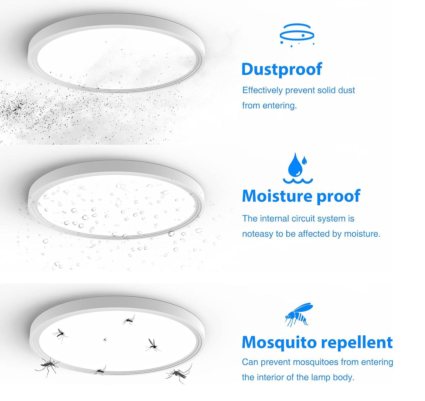 This ceiling light features a thickness of just 0.93 inches, allowing it to sit close to the ceiling without protruding. Constructed with well-made 2835 LED chips, it delivers an impressive 2400 lumens of brightness while consuming only 24 watts of energy. The use of fire-resistant plastic material ensures safety by minimizing risks related to electric leakage and fire hazards. This ceiling light is an excellent choice for anyone looking to upgrade their lighting while maintaining safety and energy efficiency.