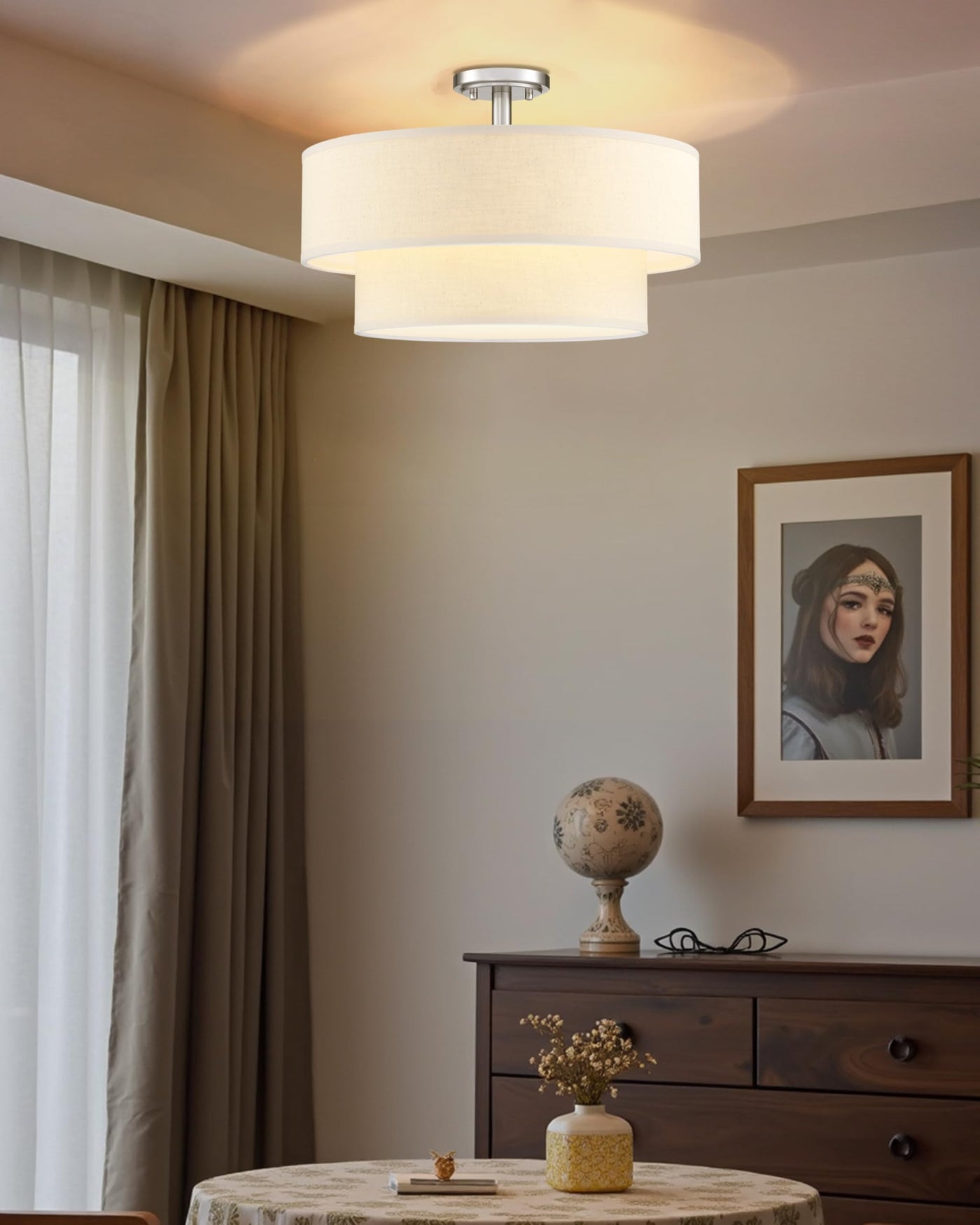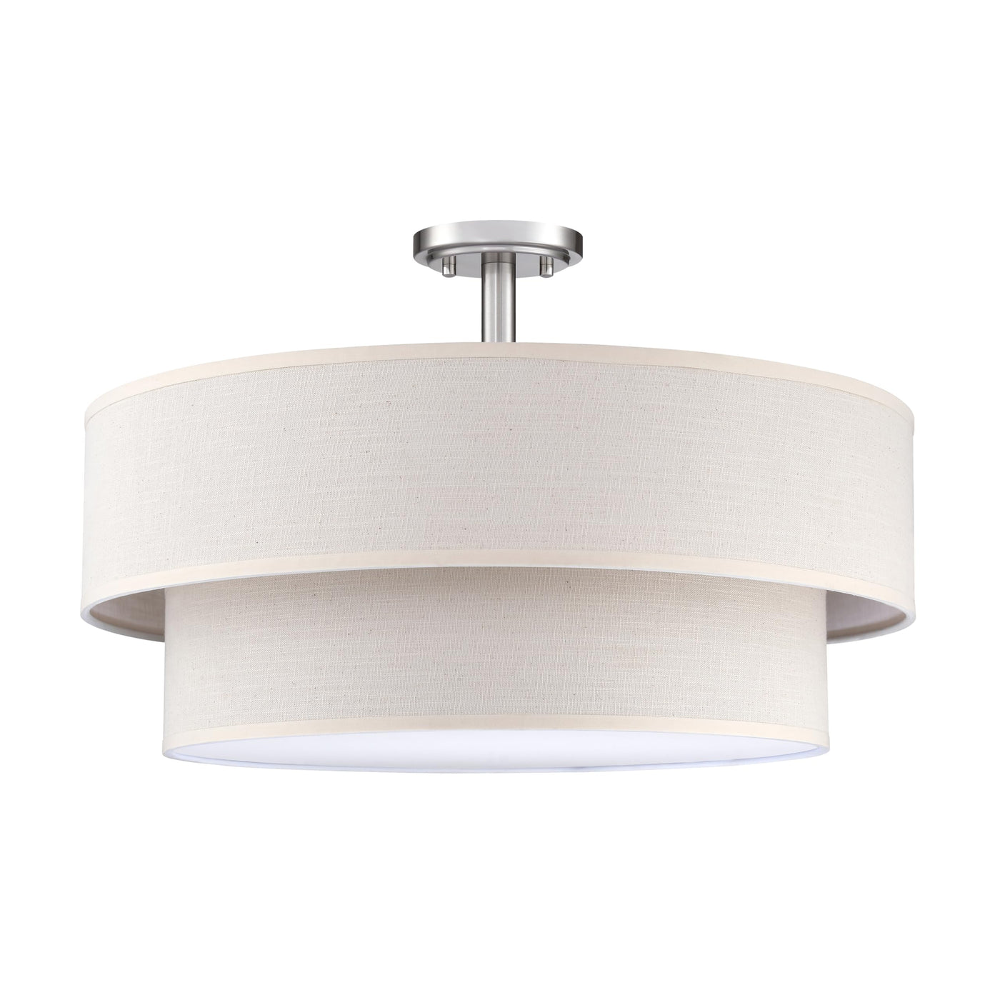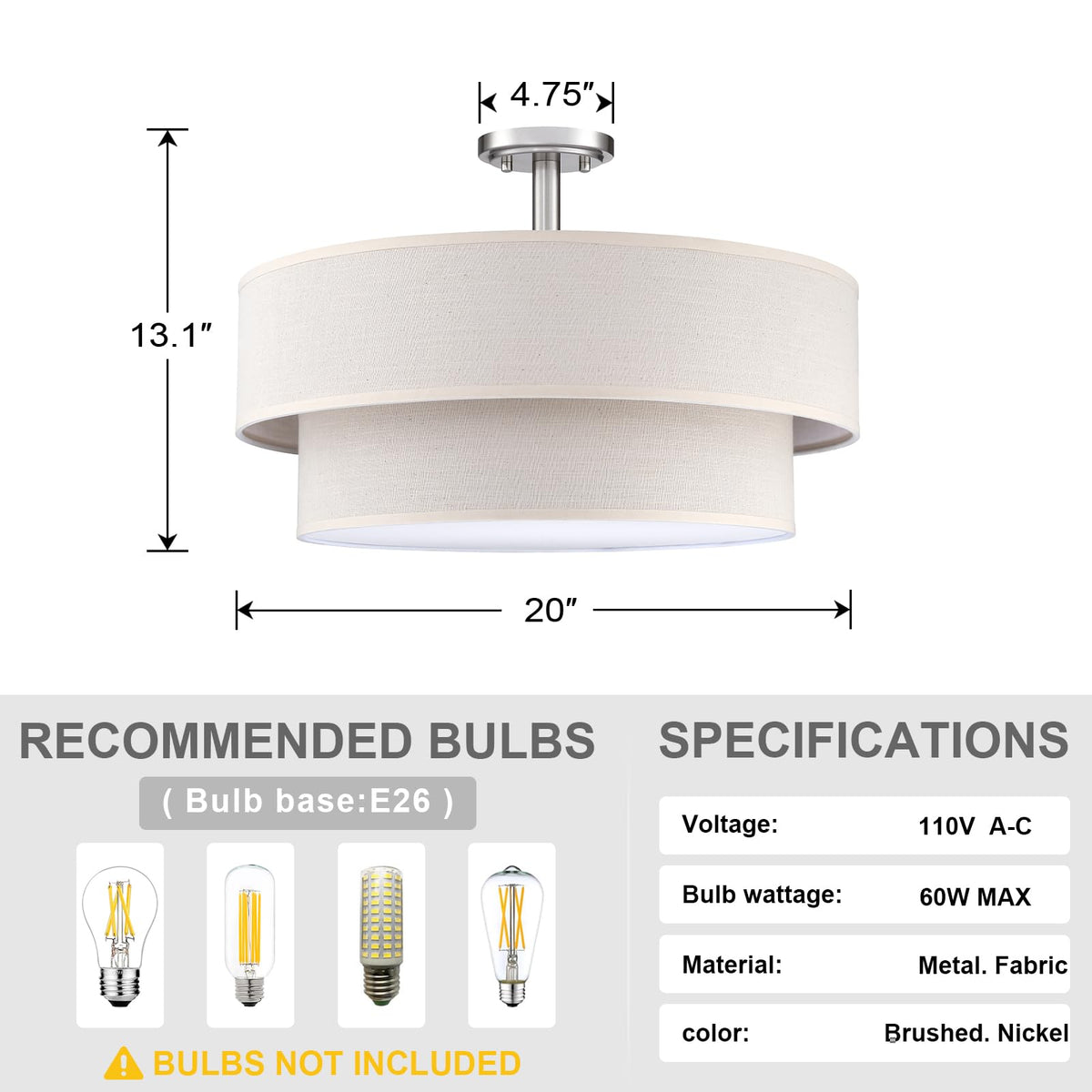 Dolaimi House 4 Light Semi Flush Mount,Close To Ceiling Light Fixture,Linen Fabric Shade Brushed Nickel Finish 20 Inch Semi Flus