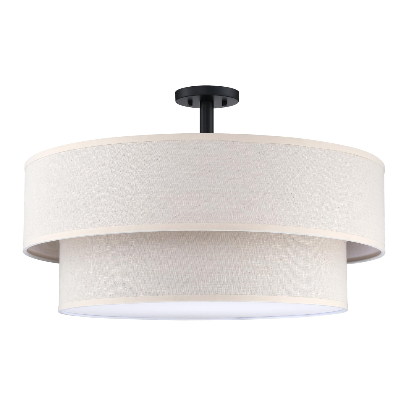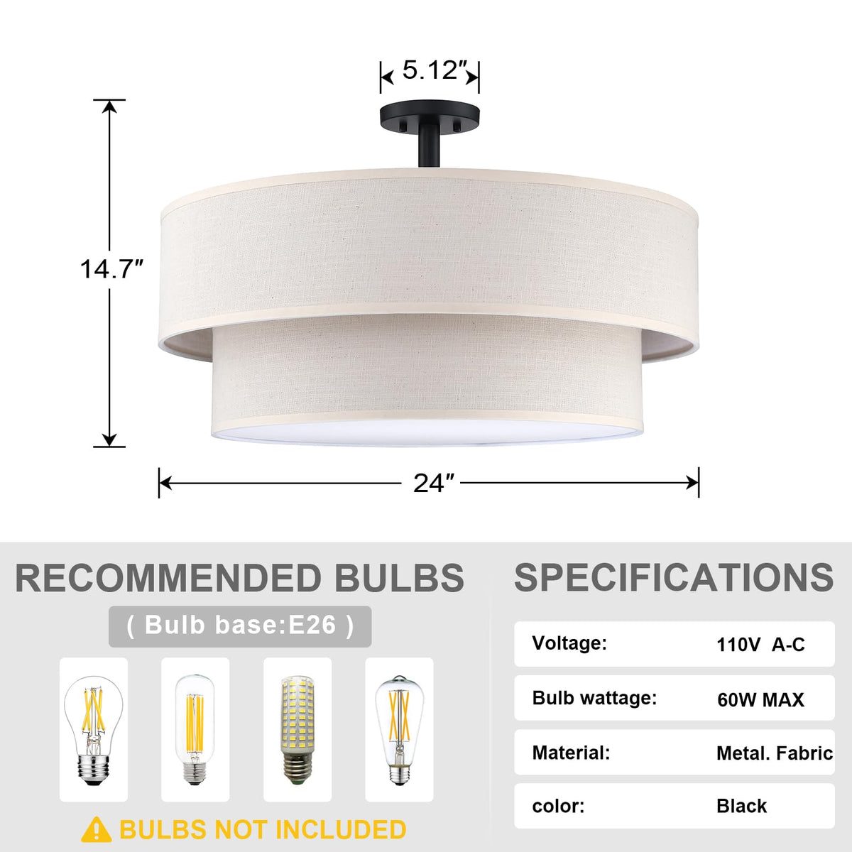 Dolaimi House 5 Light Semi Flush Mount,Close To Ceiling Light Fixture With Linen Fabric Shade Black Finish 24 Inch Semi Flush Dr