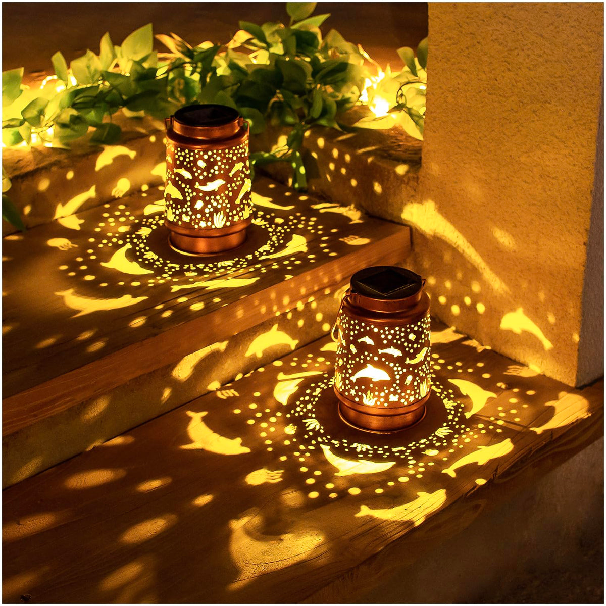 Dolphin Solar Lanterns Outdoor Waterproof Hanging Solar Lights Dolphin Gifts for Women Men Metal Decorative LED Dolphin Lanterns for Garden Decor,Yard,Patio,Lawn,Tabletop,Pathway,Landscape