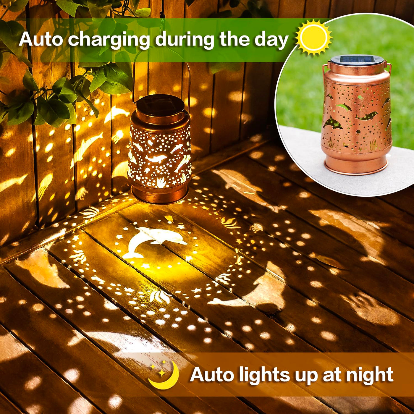 Dolphin Solar Lanterns Outdoor Waterproof Hanging Solar Lights Dolphin Gifts For Women Men Metal Decorative Led Dolphin Lanterns For Garden Decor,Yard,Patio,Lawn,Tabletop,Pathway,Landscape