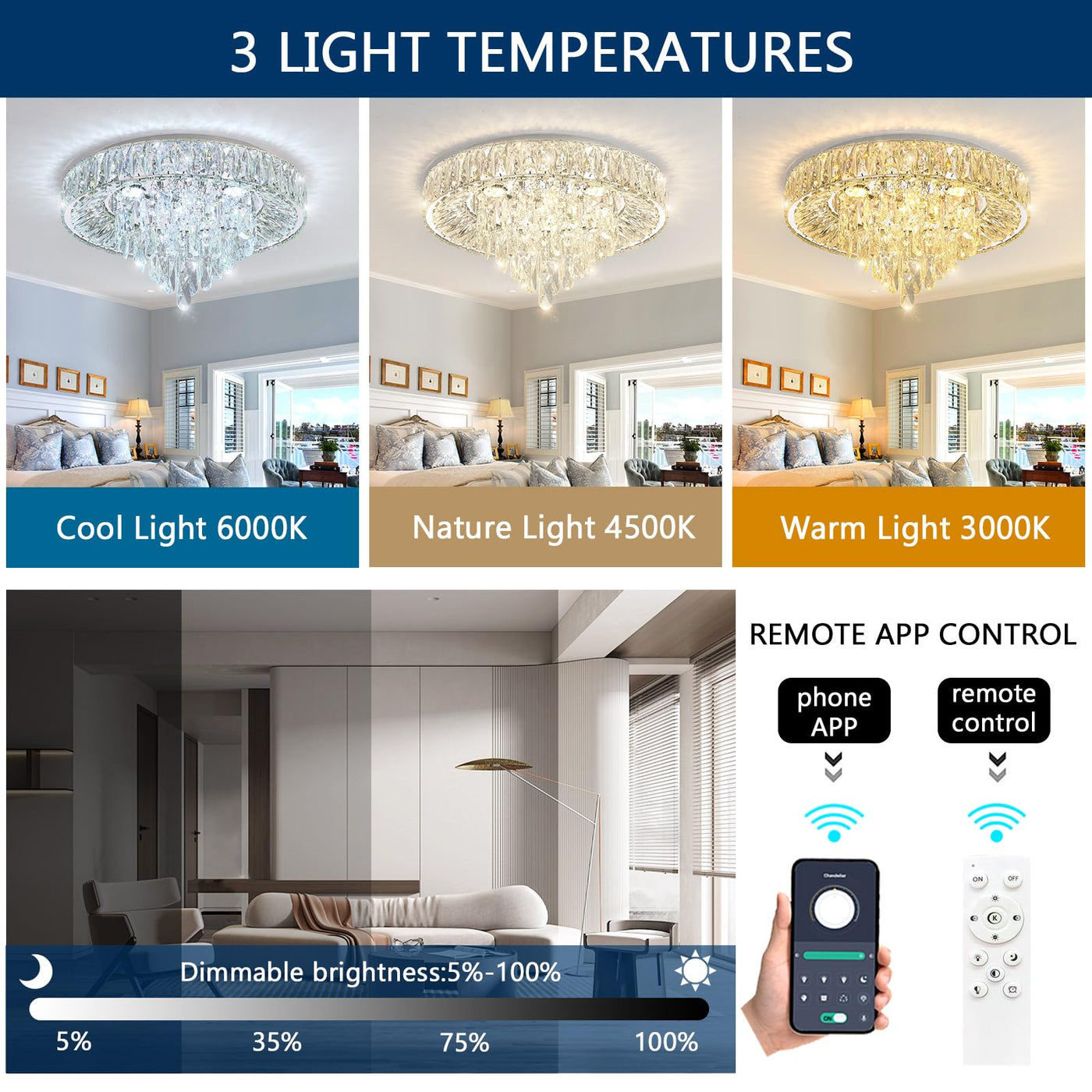 Modern Crystal Chandeliers For Dining Room Led Light Fixture Close To Ceiling Chandelier Flush Mount Ceiling Light Dimmable Lamp With Remote For Living Room Bedroom Hallway 2700K 6000K