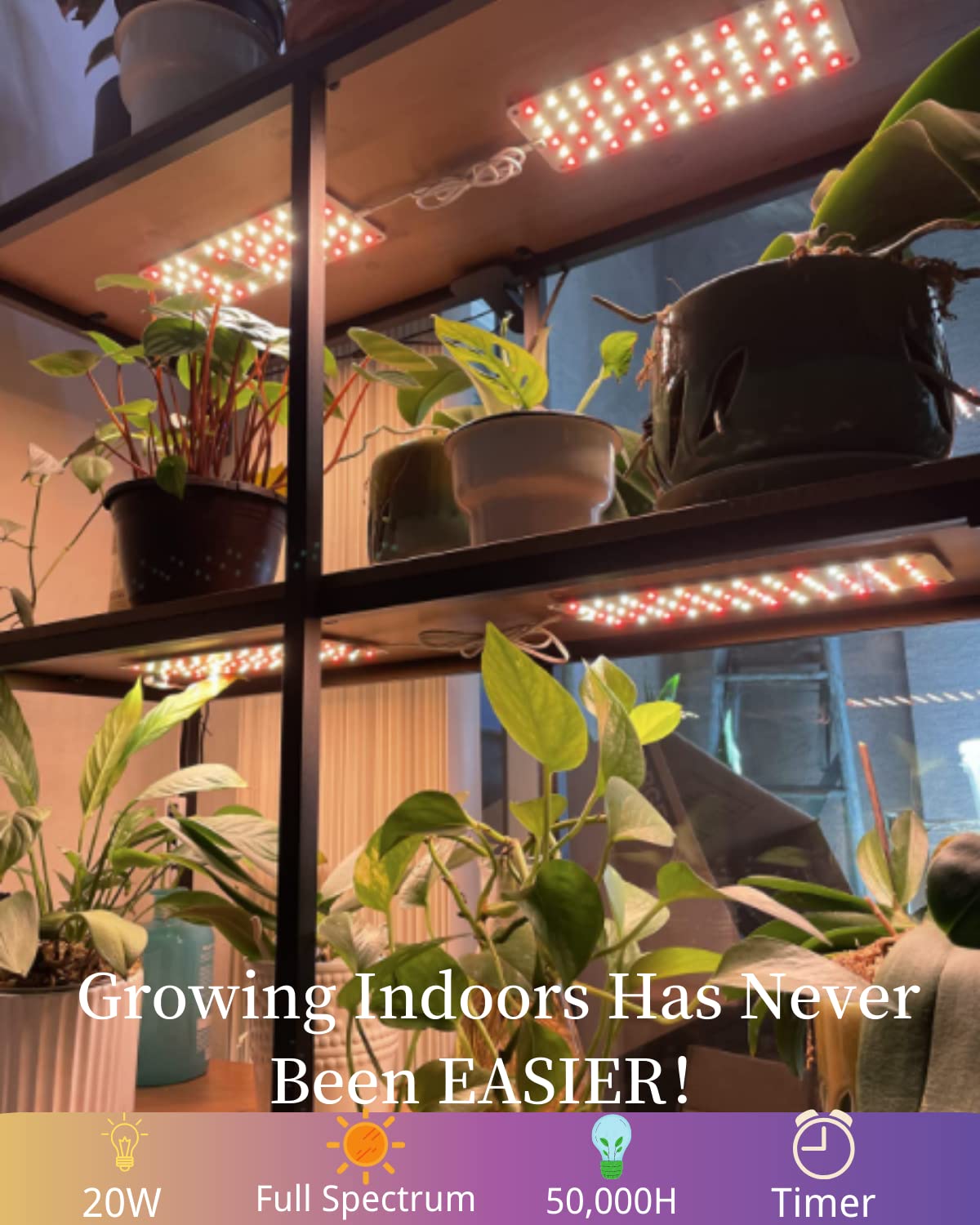 Q: What is the energy consumption of the DOMMIA Grow Lights?A: The DOMMIA Grow Lights consume only 20W of power, making them an energy-efficient option for indoor gardening. With a long lifespan of over 25,000 hours, they provide a cost-effective solution for growing plants indoors.