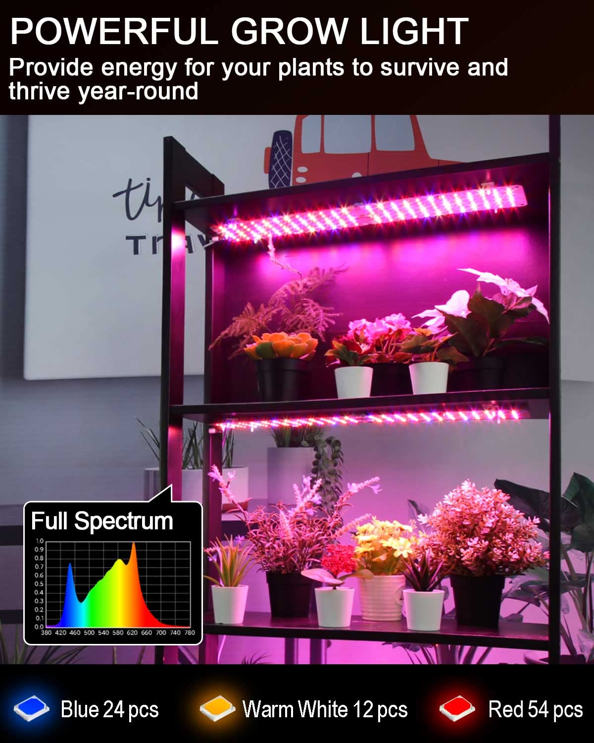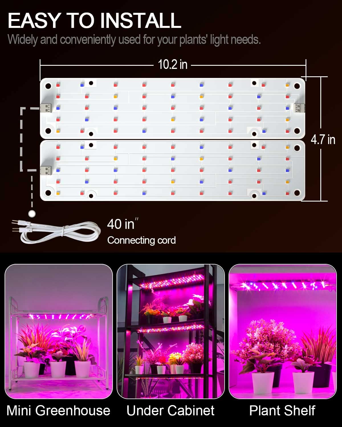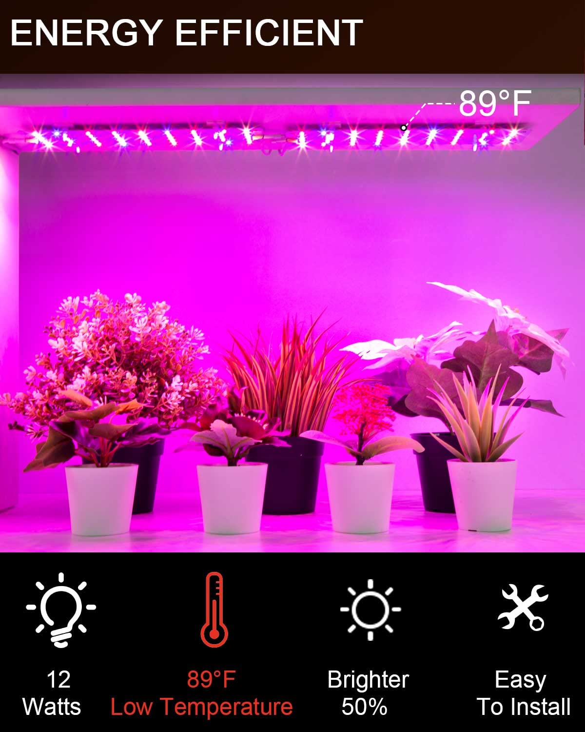 Dommia Plant Grow Light, 12W Ultra-Thin Plant Light, Full Spectrum With 90 Leds, 2Pcs Diy Assembly [Grow Light] Strip For Indoor Garden Greenhouse Aquarium Hydroponic