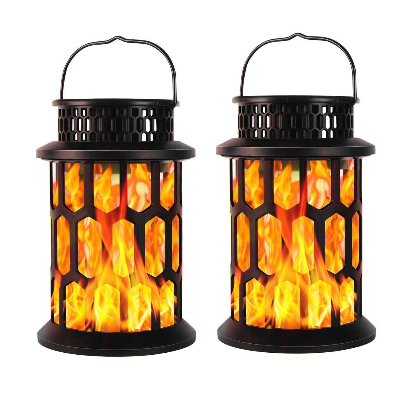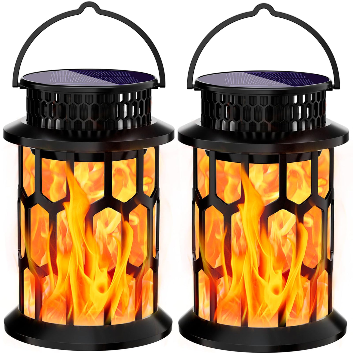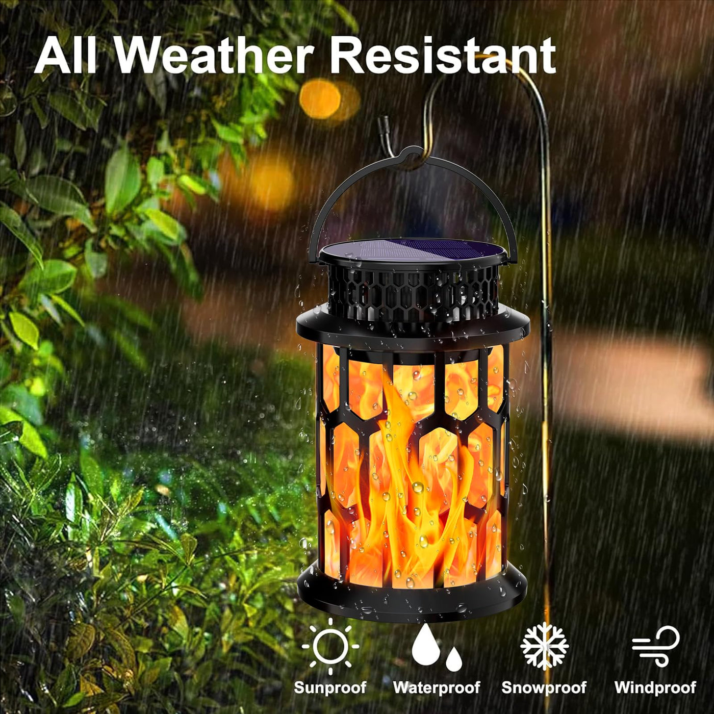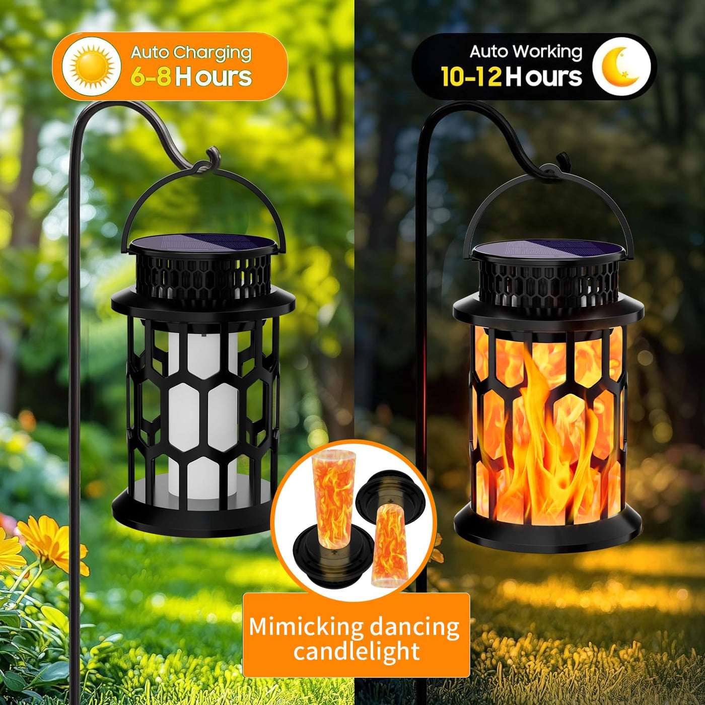 Donline Solar Lanterns Outdoor Waterproof, Flickering Flame Hanging Solar Lantern Camping Solar Powered Lights Decorative Lights For Christmas Decorations Home Garden Patio Deck Yard Path, 2 Pack