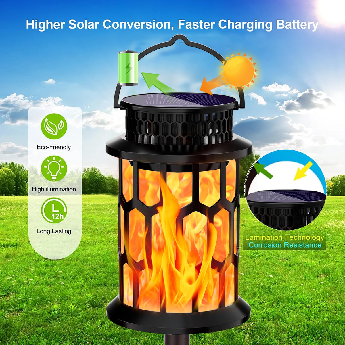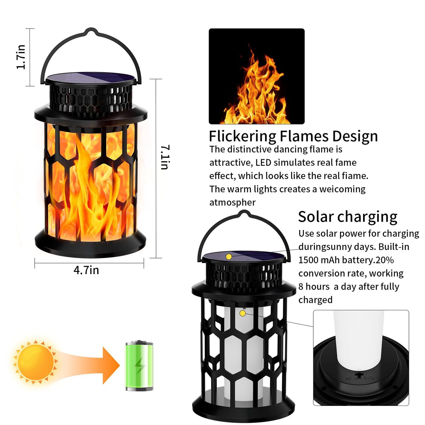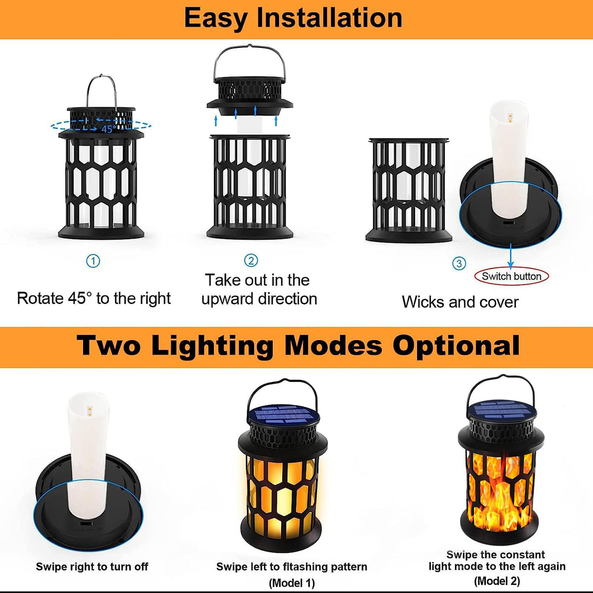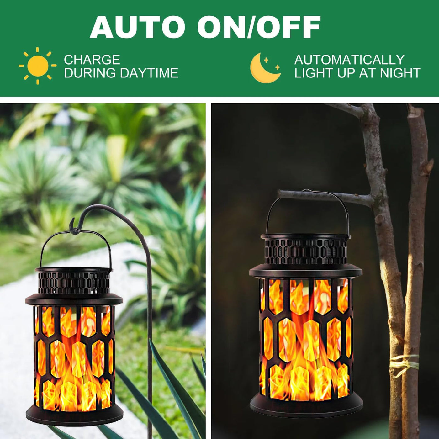 Donline Solar Lanterns Outdoor Waterproof, Flickering Flame Hanging Solar Lantern Camping Solar Powered Lights Decorative Lights For Christmas Decorations Home Garden Patio Deck Yard Path, 2 Pack
