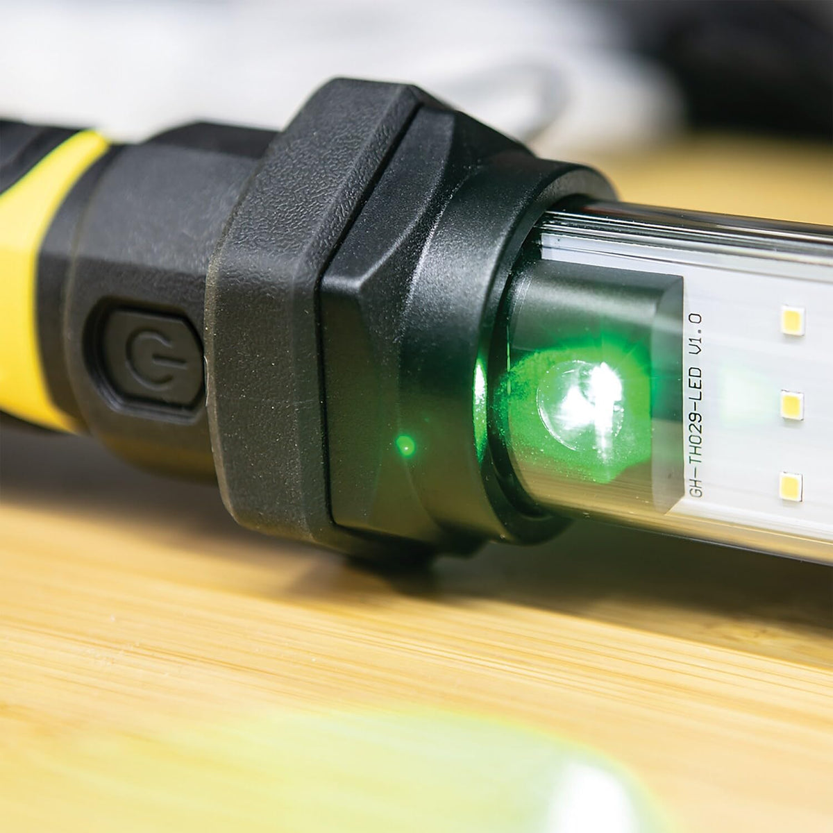 The Dorcy 42 In. 1,200 Lumen Rechargeable Light Bar is ideal for a wide range of hands free portable lighting needs. It has multiple hands-free positions thanks to its magnetic base and rotatable hang hooks. With power modes of 1,200 lumens on high and 600 lumens on low, this light comes with a power level indicator and is powered by a 4,400 mAh 3.7-volt 20 watt battery and COB LEDs. Weighing in at only 1 lb., this water-resistant light bar has a charging time of 4 to 5 hours and a running time of 4-1/2 hours on high, 10-3/4 hours on low.
