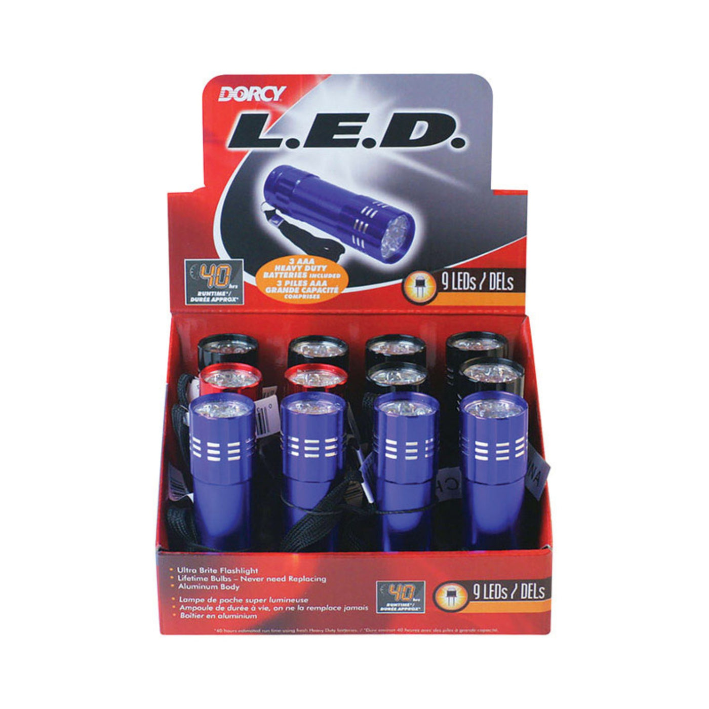 From the ManufacturerThe 3AAA 9 LED Aluminum Flashlight features 9 super bright white 5MM LEDs. This flashlight is durably constructed of aluminum and has a recessed tail cap push button switch for ease of use. The Aluminum Flashlight comes complete with a convenient nylon wrist strap and 3 AAA cell batteries. The 3AAA 9 LED Aluminum Flashlight is available in assorted colors: red, blue, and black. Colors are randomly selected for each order at the time of shipment.