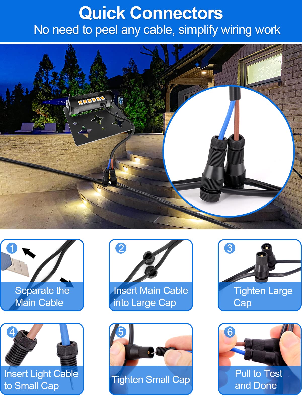 Q: How easy is it to install the DOREIO retaining wall lights?A: Installation is straightforward, thanks to the 270° rotatable design and included 16 quick connectors. This allows for easy angle adjustment and multiple placement options, making it convenient for DIY projects.
