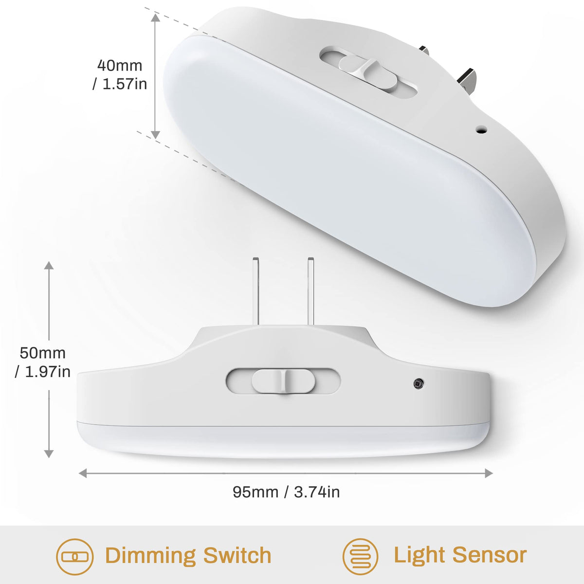 Doresshop Night Light, Night Lights Plug Into Wall, [2 Pack] 1W 3000K Led Night Light With Dusk To Dawn Sensor, Dimmable Night Light From 0Lm To 100Lm For Bathroom Hallway Bedroom Kids Room Stairway