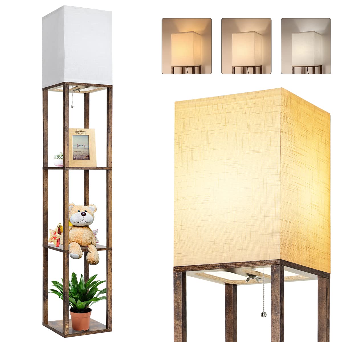 Dott Arts Floor Lamp With Shelves, 3 Color Temperature Led Bulb, Wood Texture, Storage, Brown