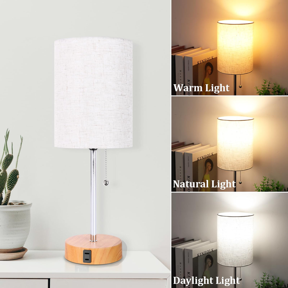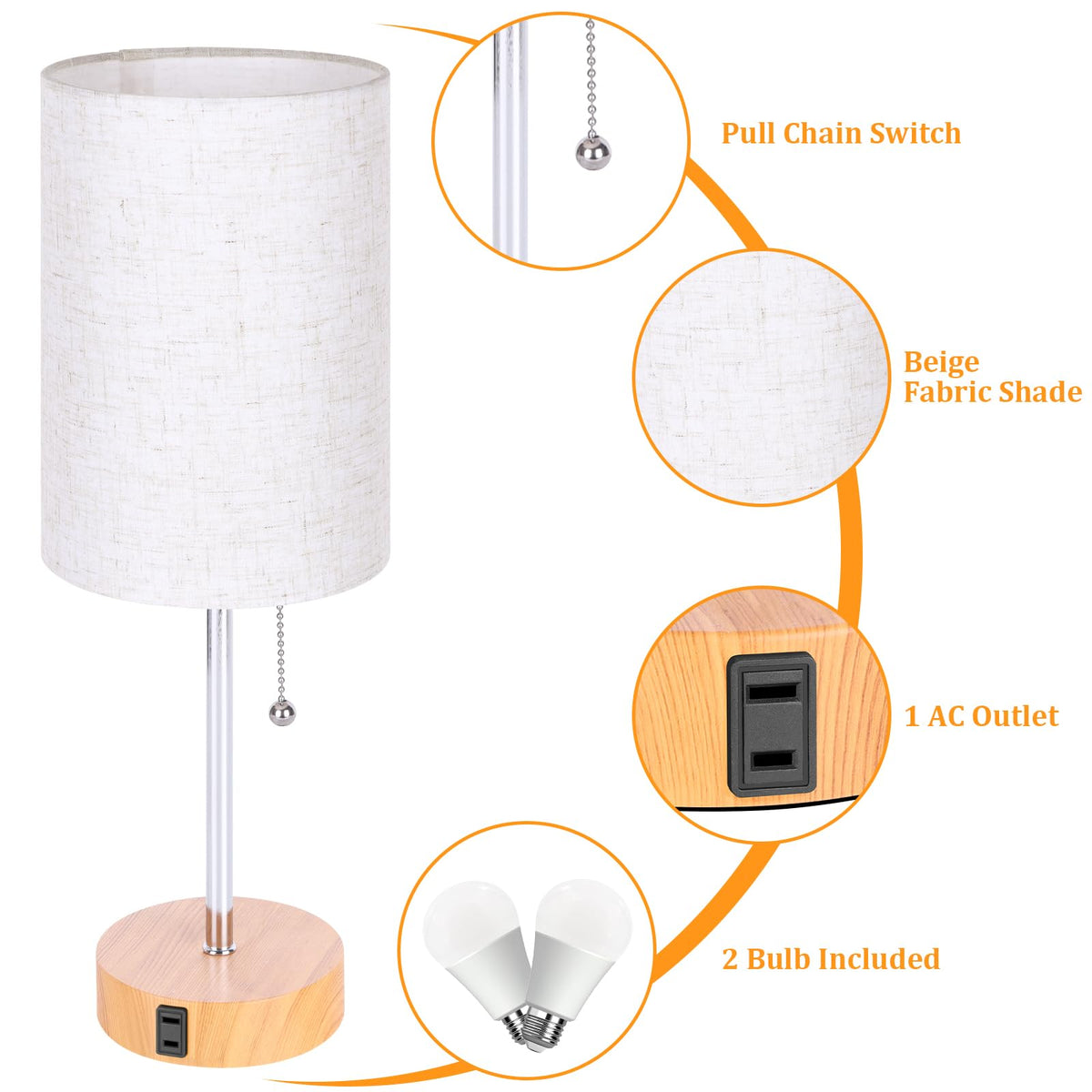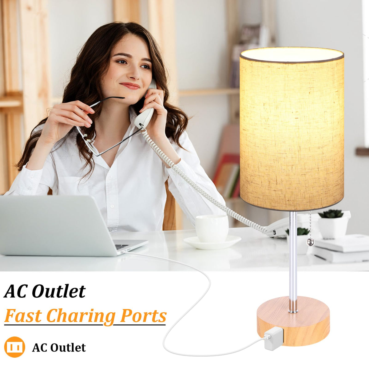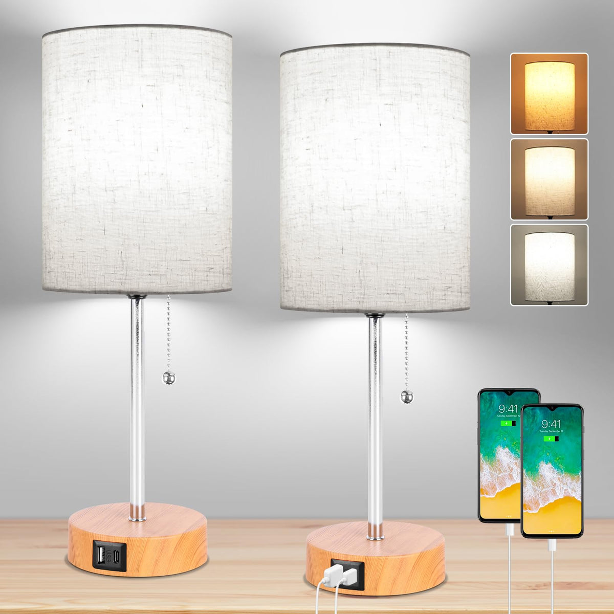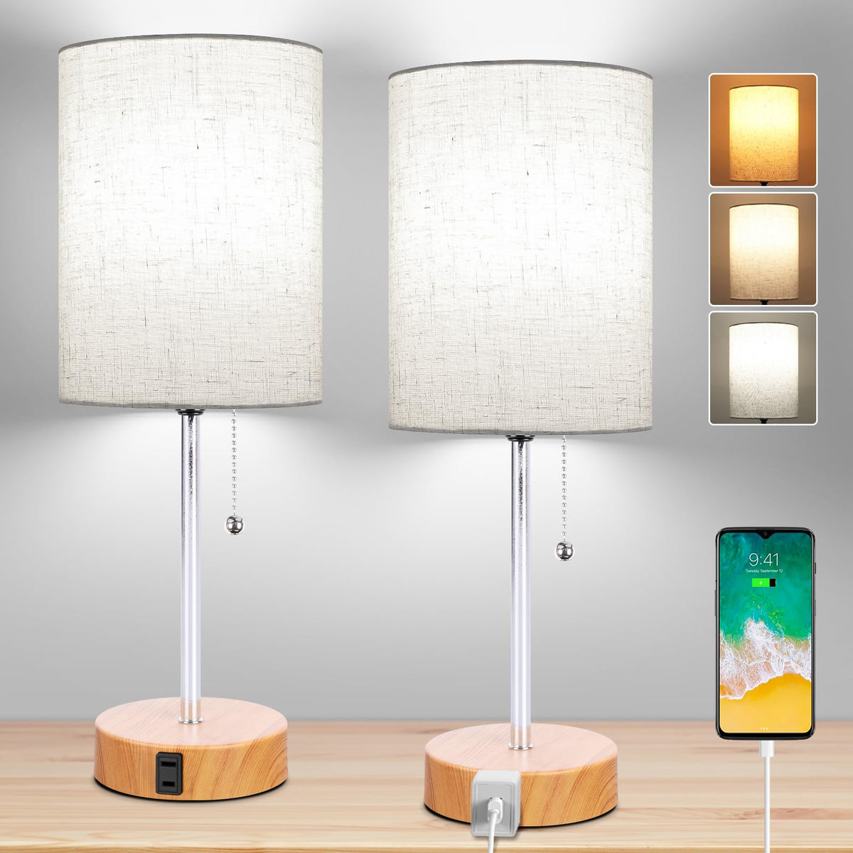 Dott Arts Usb Bedside Table Lamp Set Of 2, Wood Grain Nightstand Lamps With Ac Outlets, Bulbs Included