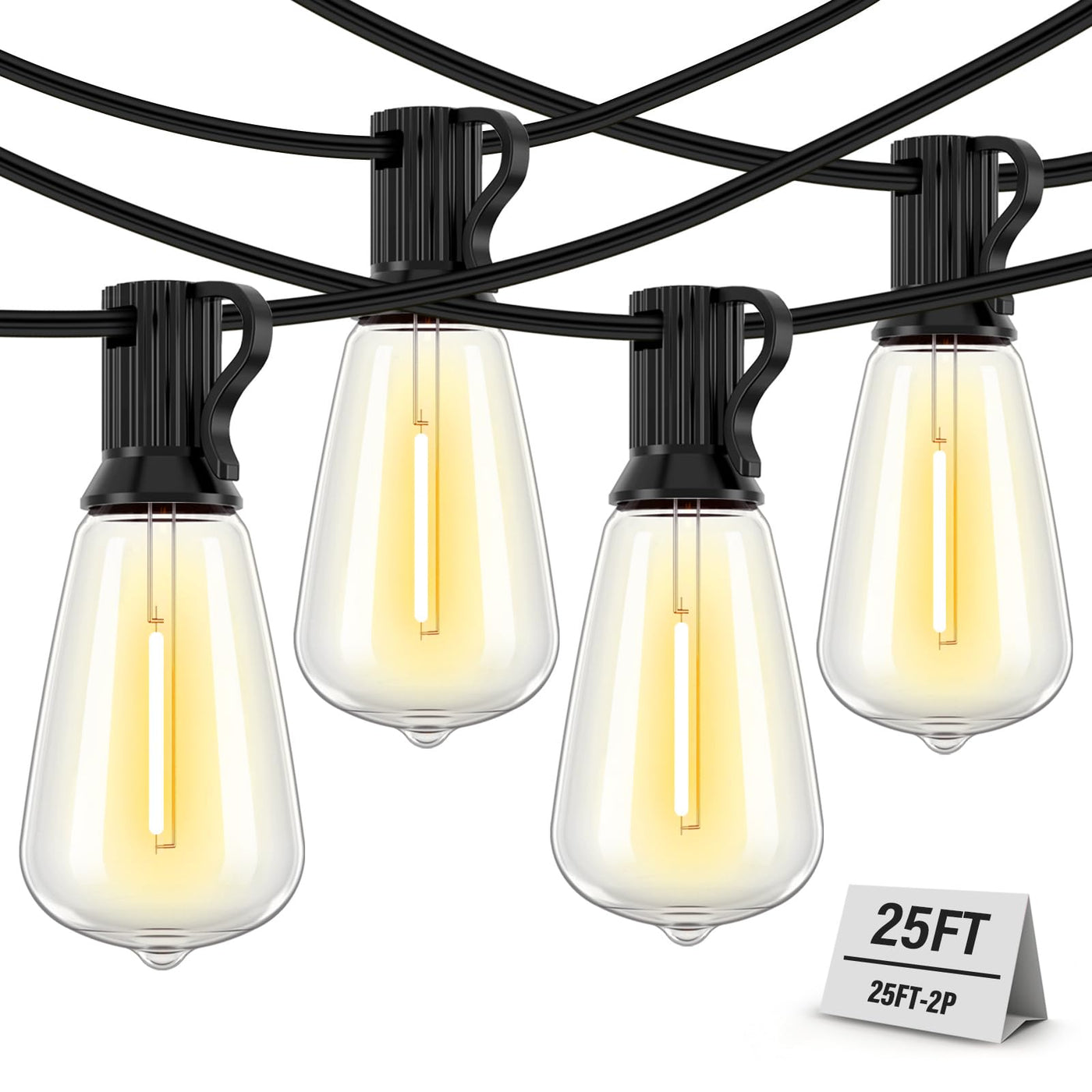 These 25 Feet 2 Pack String Lights Come With 24 St38 Vintage Bulbs And 2 Spare Bulbs, Providing Ample Brightness And A Warm White Color Temperature Of 2700K. Designed With Durability In Mind, These Lights Are Both Waterproof And Shatterproof. The Bulbs Are Made From Pet Material, Ensuring They Can Withstand Extreme Temperatures And Are Resistant To Water Damage. We Have Conducted Rigorous High And Low-Temperature Tests To Ensure Their Reliability Even In The Harshest Weather Conditions. Not Only Are These Outdoor Led String Lights Energy-Efficient, Consuming Only 1 Watt Per Bulb, But They Also Create A Cozy And Inviting Atmosphere. Whether You Are Hosting A Backyard Gathering Or Simply Enjoying A Quiet Evening On Your Patio, These Lights Will Enhance The Ambiance Of Any Space. String Lights Are A Breeze To Install. Simply Choose The Most Convenient Spot For Your Lights And Secure Them In Place Using Zip Ties Or Cup Hooks. The 18.5-Inch Spacing Between Each Bulb Allows For An Even Distribution Of Light, Creating A Beautiful Glow. Versatile And Practical, Our String Lights Can Be Used Both Indoors And Outdoors. They Are Perfect For Garden, Patio, Coffee Shop, Small Bar, Camping Trip, Balcony, Pergola, And Can Add A Festive Touch To Occasions Like Wedding, Birthday, Christma, Halloween, And Any Event That Requires A Captivating Atmosphere. Experience The Magic Of Our Outdoor String Lights And Transform Your Outdoor Space Into A Cozy Retreat. Order Yours Today And Enjoy The Perfect Combination Of Functionality And Ambiance. [Not Solar String Lights]