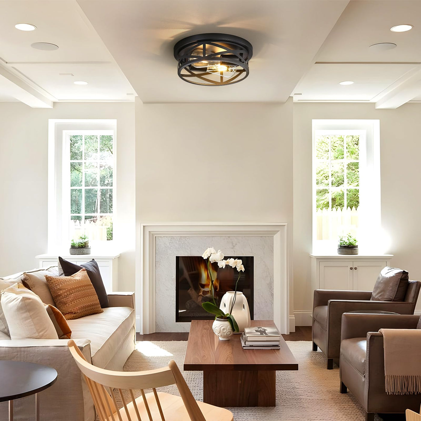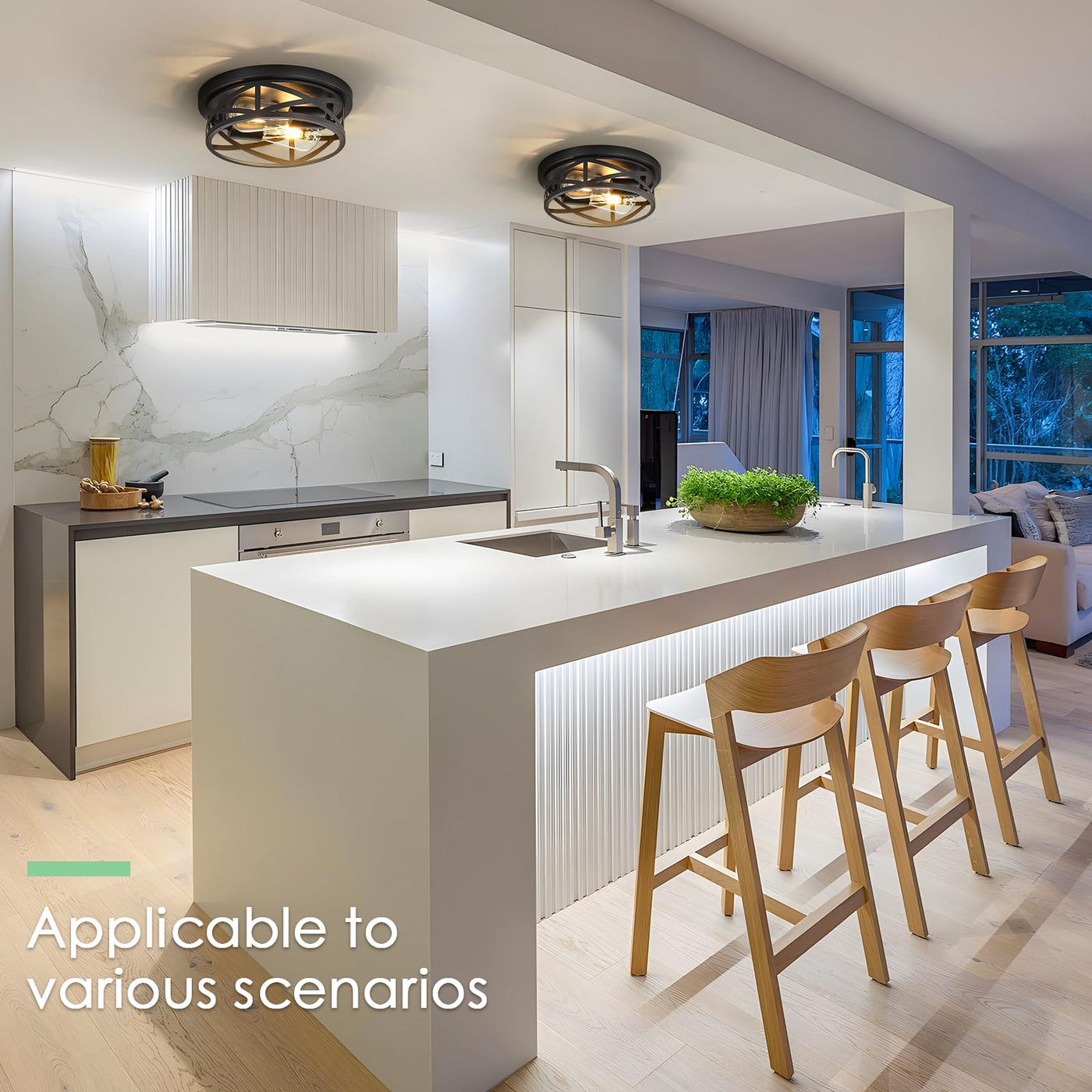 Doxvieze Farmhouse Ceiling Light Fixtures, 11 Inch Metal Cage Cross Close To Ceiling Lights 2-Light, Vintage Flush Mount Ceiling