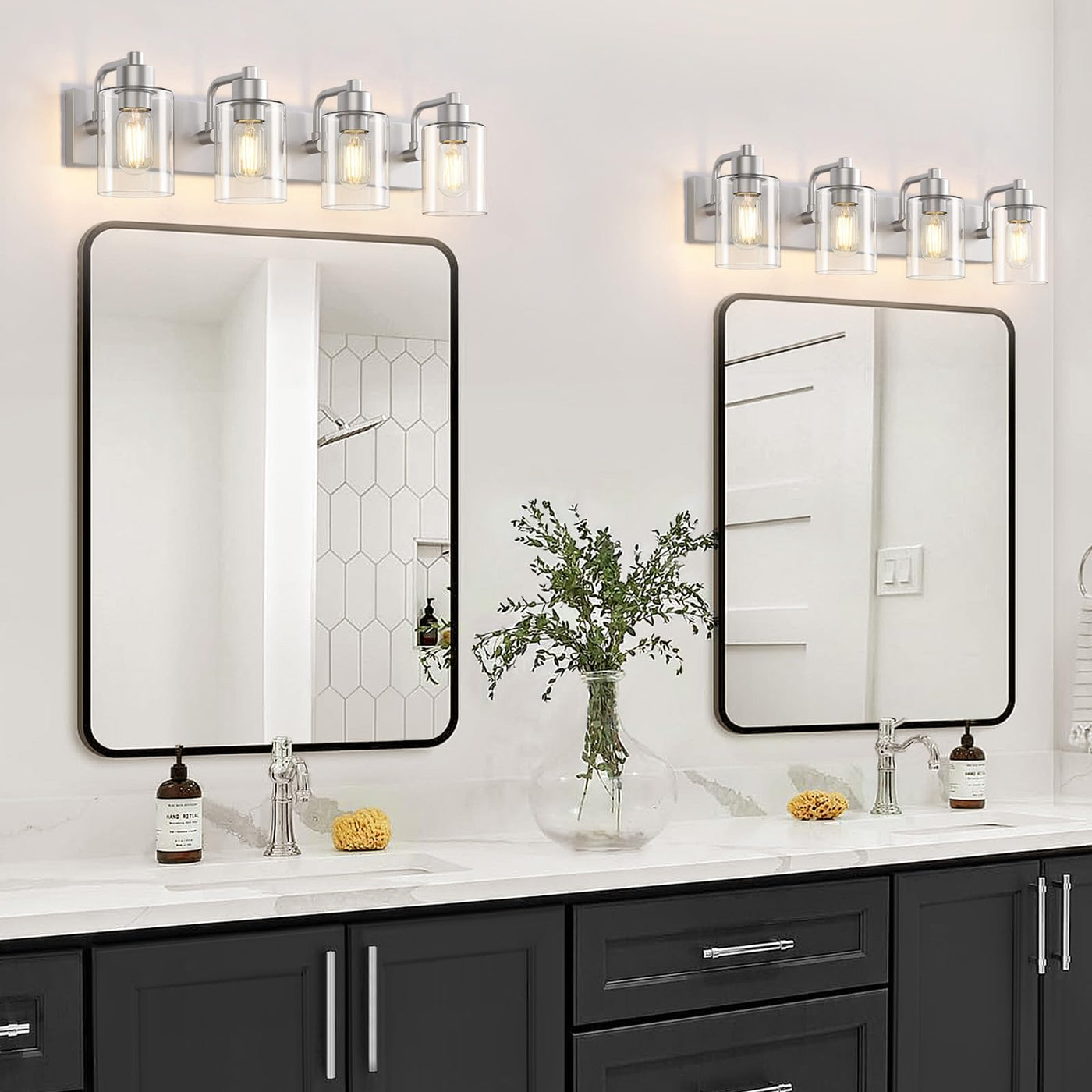 The bathroom vanity light are built in sturdy metal black base and lamp body, with clear glass shades, create a modern warm to your home lighting. The shade makes the lamp base dust and water resistant, so it is also suitable for wet places such as bathroom lights over mirror, laundry rooms