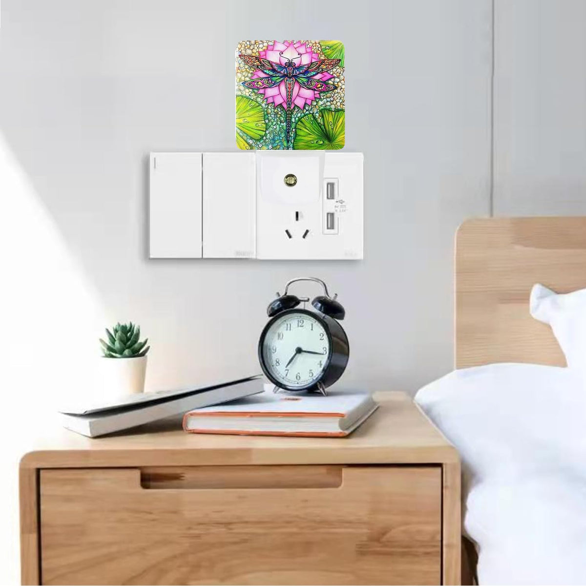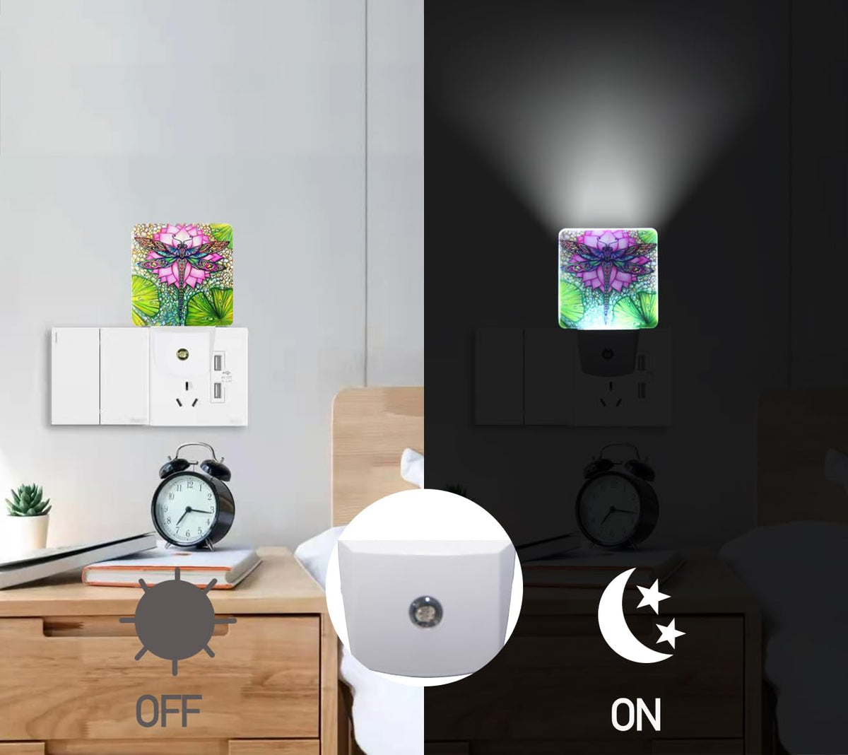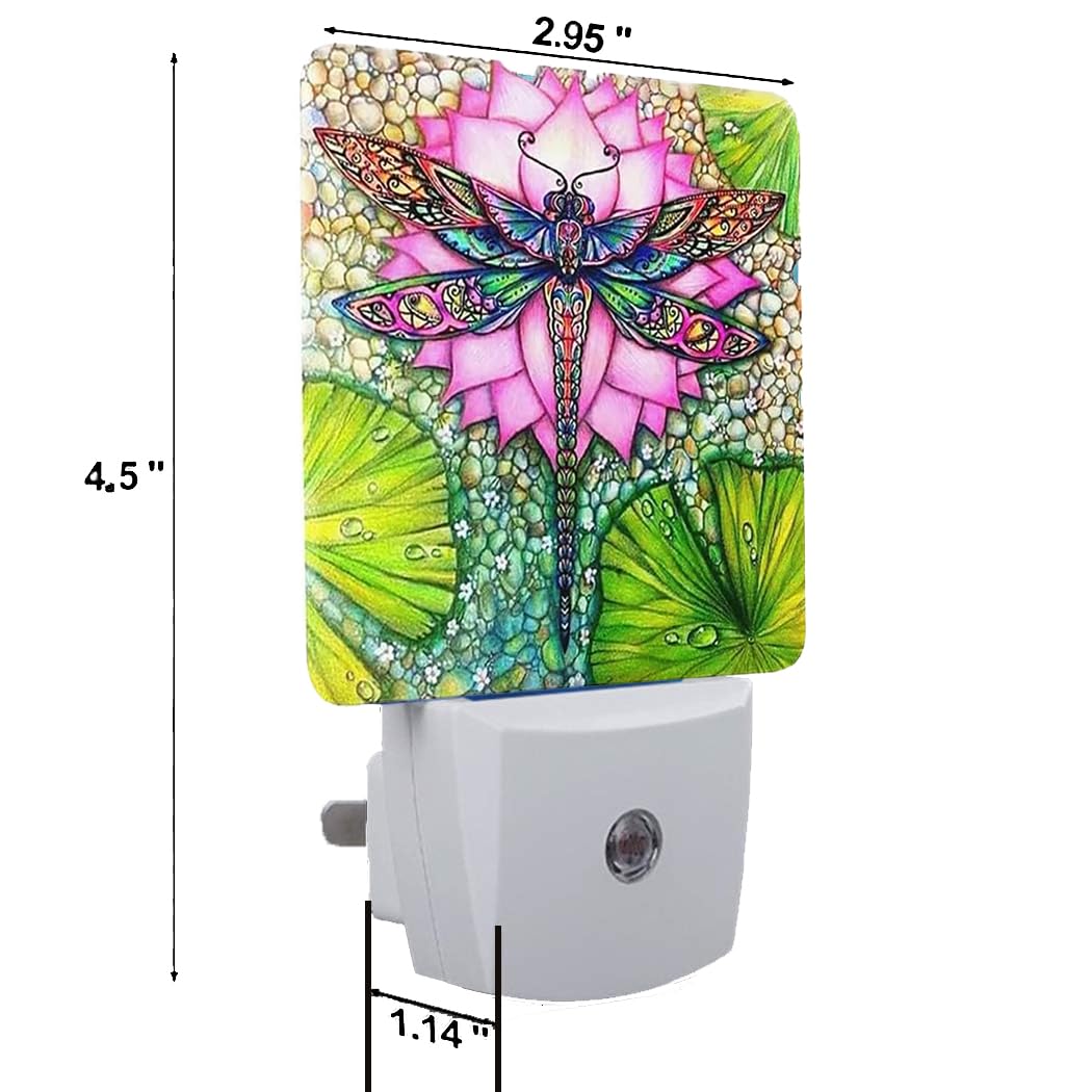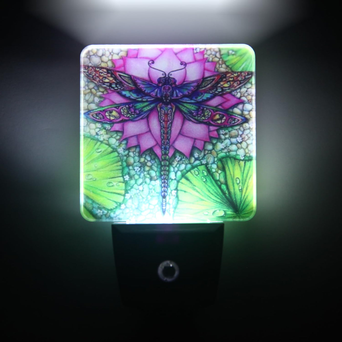 Dragonfly And Lotus Flower Plug-In Led Night Light,Smart Auto Dusk To Dawn Sensor Nightlights Plug Into Wall,White Energy Effici