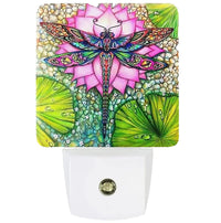 Q: What are the dimensions of the Dragonfly and lotus flower night light?A: The night light measures 3 inches in width, 4.5 inches in height, and 1.4 inches in depth (76 x 114 x 48mm). Its compact size makes it unobtrusive when plugged into a wall socket.