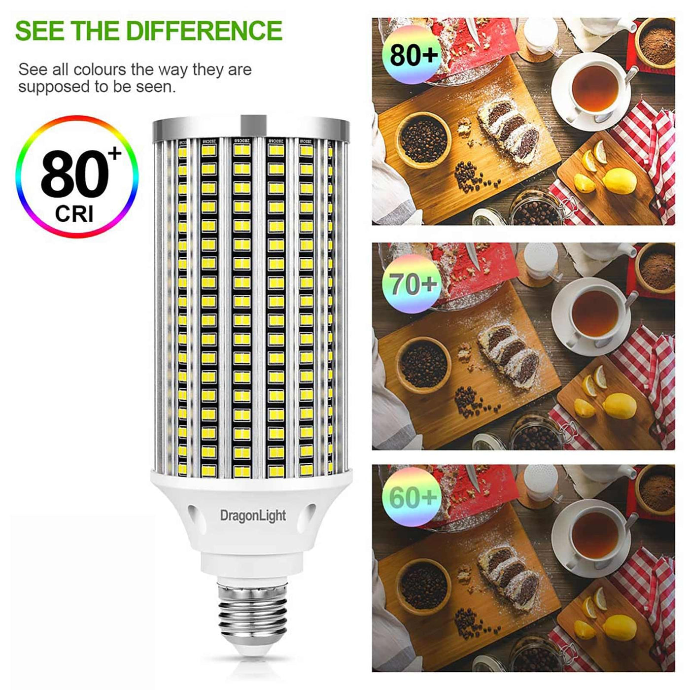 Color:60W / 500W Equivalent / 7200 Lm Advantage:Heat Dissipation Is The Key Fact For Lifespan Of High Watts Led Bulbs, Our Efficient Structure Design Works Out Ventilation Perfectly, Increase The Lifespan Significantly.Intelligent Ic Constant Current Driver, Ensure The Stable And Durable Working Status.No Warm-Up, Instant On And Re-On, No Light Recession After Multiple Switches.Green And Eco-Friendly, No Harmful Elements Such As Mercury, Uv, Xenon, Ir. Light Is Soft And Uniform, Safe To Eyes.Technical Specification: Wattage: 60W Brightness:7200 Lumen Lumen Efficacy: 120Lm/W Color Temperature: 3000K(Warm White) Color Rendering Index (Cri): 80+ Beam Angle: 360 Start Up Time: 0.3Second Lifespan: 50000 Hours Working Voltage: Ac100-277V Working Temerature:-4~+113?Socket: E26 Item Size:H:7.87''X F2.9'' Item Weight:0.62Lbapplication: Strong Adaptability, Suitable For Any Orientation With Same Lighting Illumination. High Power Led Bulb, Great For Flood Light, High Bay Light, Home&Garage Lighting, Security Light, Warehouse Light, Street Light, Office Lighting, Offer Stable And Durable Lighting Solution For Commercial&Industrial Projectattentions: Switch Off The Power Before Replacing The Bulb This Bulb Is Non Waterproof,Ideal For Indoor And Protected Outdoor Fixturesthis Bulb Is Non-Dimmablewhat You Get: 2 X 60 Watt Led Corn Cob Light Bulbs 2 Years Hassle-Free Quality Guarantee And Free Replacement Servicewarm Tips: How To Judge Your Lamps Socket Type:E14: Diameter 14Mm(0.55Inch)E26: Diameter 26Mm(1.02Inch)E39: Diameter 39Mm(1.54Inch)Dragonlight 60W Led Corn Light Bulb'S Base Is E26